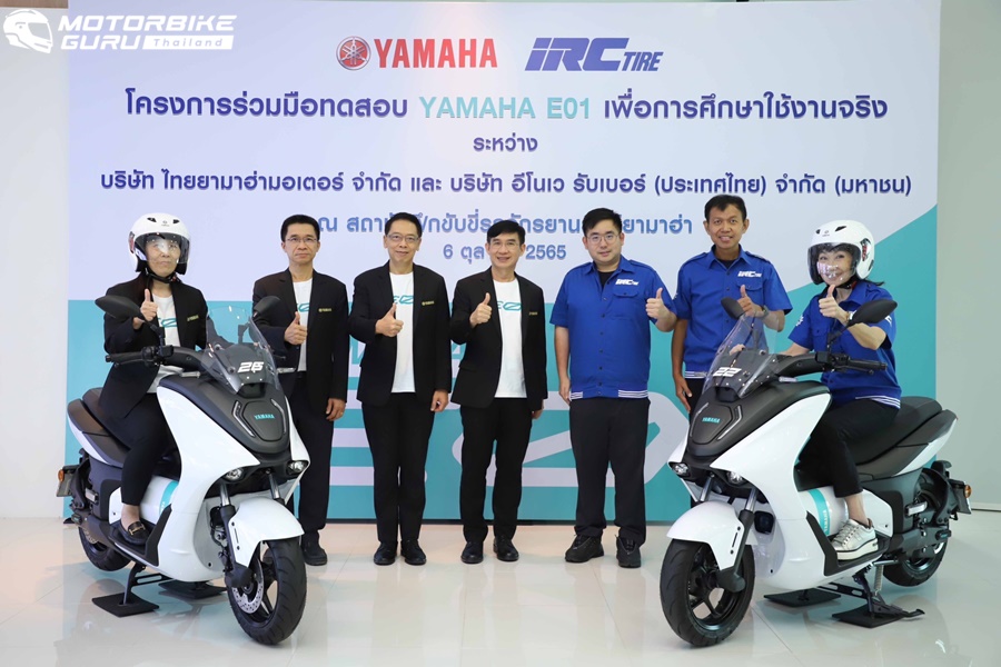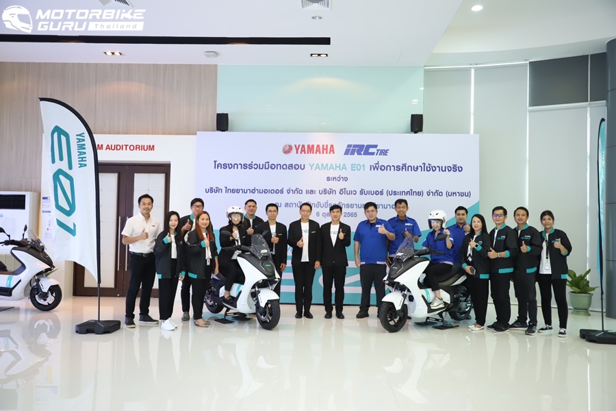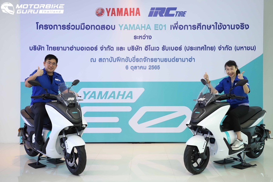 ในการส่งมอบรถจักรยานยนต์ไฟฟ้า YAMAHA E01 โดยการส่งมอบในครั้งนี้เป็นหนึ่งในการพัฒนาและศึกษาการใช้งานจริง (POC) ที่ทางบริษัท ไทยยามาฮ่ามอเตอร์ จำกัด ได้ร่วมมือกับ บริษัท อีโนเว รับเบอร์ (ประเทศไทย) จำกัด (มหาชน) ผู้ผลิตยางรถจักรยานยนต์ยี่ห้อ IRC นำไปทดสอบการใช้งานจริงพร้อมต่อยอดในการพัฒนายางที่เหมาะสมกับรถจักรยานยนต์ไฟฟ้าอย่างแท้จริง