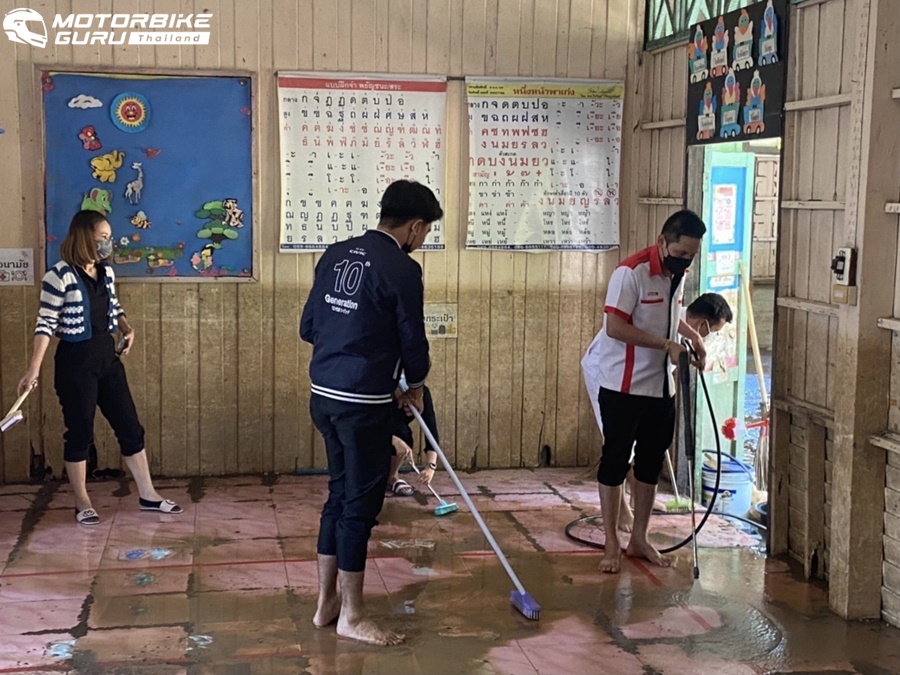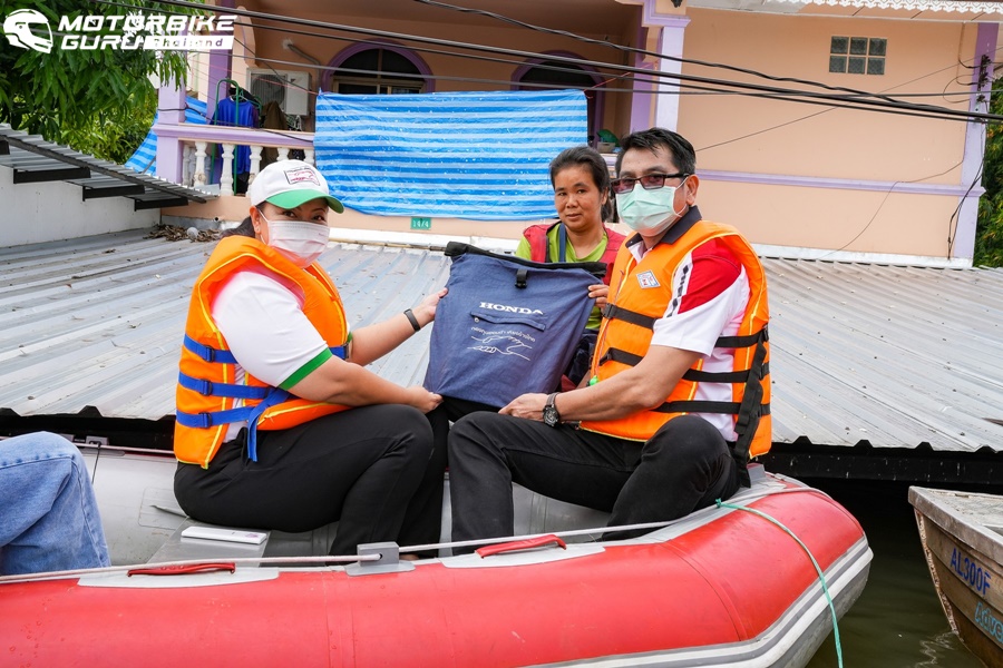 สำหรับความช่วยเหลือของกองทุนฮอนด้าฯ ในครั้งนี้ ประกอบด้วยการมอบถุงยังชีพ 3,200 ถุง และเรือยางพร้อมเครื่องยนต์ 9 ลำ นอกจากนี้ เพื่อสานต่อการมอบความช่วยเหลือเบื้องต้นไปยังผู้ที่ได้รับผลกระทบจากอุทกภัย ได้ร่วมกับวิทยาลัยเทคนิคอุบลราชธานี และผู้จำหน่ายรถจักรยานยนต์ฮอนด้า จ.อุบลราชธานี จัดกิจกรรม ฮอนด้าร่วมใจ ฟื้นฟูพื้นที่ประสบภัยหลังน้ำท่วม ณ โรงเรียนวัดคูเดื่อวิทยาคม ต.แจระแม อ.เมืองอุบลราชธานี จ.อุบลราชธานี โดยรวมพลังจิตอาสาฮอนด้า อาจารย์ นักศึกษา และ พนักงานของผู้จำหน่าย ร่วมทำความสะอาดและฟื้นฟูโรงเรียน รวมถึงชุมชนในบริเวณใกล้เคียงที่ได้รับผลกระทบจากอุทกภัยเมื่อเดือนตุลาคมที่ผ่านมา รวมถึงส่งมอบเครื่องฉีดน้ำแรงดันสูง จำนวน 6 เครื่อง ให้แก่ผู้จำหน่ายรถยนต์และรถจักรยานยนต์ฮอนด้า จ.อุบลราชธานี และจ.สิงห์บุรี ในการให้ความช่วยเหลือชุมชน