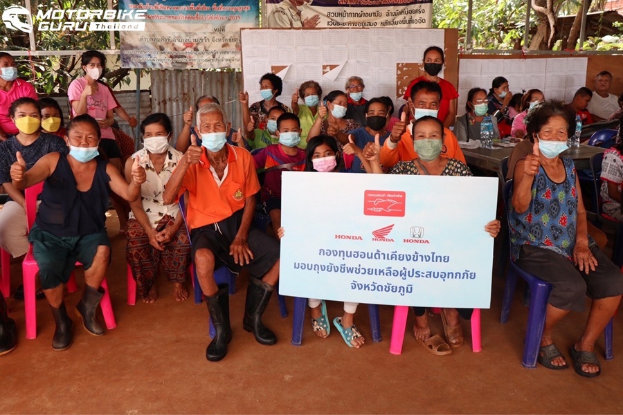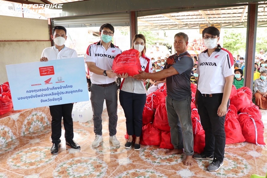 กองทุนฮอนด้าเคียงข้างไทย ภายใต้มูลนิธิฮอนด้าประเทศไทย ผนึกกำลังร่วมกับตัวแทนผู้จำหน่ายรถยนต์และรถจักรยานยนต์ฮอนด้าส่งมอบความช่วยเหลือให้ผู้ประสบภัย 5 จังหวัด ในพื้นที่ภาคตะวันออกเฉียงเหนือและภาคกลาง ได้แก่ ชัยภูมิ อุบลราชธานี ศรีสะเกษ ชัยนาท และสิงห์บุรี ซึ่งประสบอุทกภัยในช่วงเดือนกันยายนและตุลาคม 2565 พร้อมจัดกิจกรรม ฮอนด้าร่วมใจ ฟื้นฟูพื้นที่ประสบภัยหลังน้ำท่วม รวมพลังจิตอาสาใน จ.อุบลราชธานี ทำความสะอาดพื้นที่ที่ได้รับผลกระทบจากอุทกภัย รวมถึงส่งมอบเครื่องฉีดน้ำแรงดันสูงฮอนด้า รวมส่งมอบความช่วยเหลือทั้งสิ้นมูลค่า 1.8 ล้านบาท