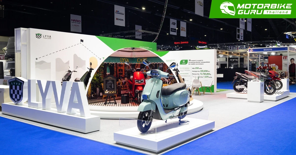 LYVA MB5 รถมอเตอร์ไซค์ไฟฟ้ารูปทรงกะทัดรัด น้ำหนัก 78 กก. จิ๋วแต่แจ๋วด้วยความสามารถบรรทุกน้ำหนักได้ถึง 150 กก. และจอ LCD แสดงผลขนาดใหญ่ มาพร้อมขุมพลังจากแบตเตอรี่ลิเธียมขนาด 60V 40AH ทำงานควบคู่กับมอเตอร์ขนาด 1200 วัตต์ พร้อมระบบระบายความร้อนด้วยสารเหลว ล้อหน้าเป็นดิสก์เบรก ล้อหลังเป็นดรัมเบรกเซรามิก ทำความเร็วได้สูงสุด 50 กม.ต่อชั่วโมง ใช้เวลาในการชาร์จ 3 ชั่วโมง คิดเป็นค่าไฟครั้งละ 9 บาท (คำนวณจากค่าไฟหน่วยละ 4 บาท) สามารถวิ่งได้ระยะทาง 100-120 กม. สัญญาณกันขโมยควบคุมด้วยรีโมท รับประกันมอเตอร์และแบตเตอรี่ 2 ปี มีสีให้เลือก 6 สี ได้แก่ Sparkle Green, Scarlet Red, Pure White, Urban Black, Arctic Blue และ Stone Gray ราคาจำหน่ายปกติ 77,000 บาท พิเศษ! เฉพาะในงานมอเตอร์โชว์ 49,000 บาท