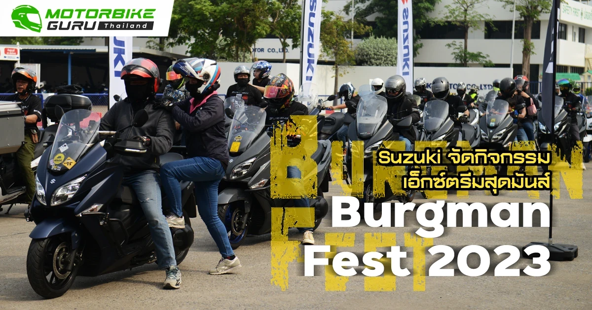 Burgman Fest 2023 กิจกรรมรวมพลไบค์เกอร์เจ้าของซูซูกิ Burgman งานนี้มาร่วมสนุกกันแบบเอ็กซ์ตรีม ฟรี ! ตั้งแต่เช้า-เย็น โดยเป็นการขี่รถจาก Suzuki World รังสิตคลอง 3 ไปสาดกระสุนกันที่สนามยิงปืนภูมิไพลิน คลอง 4