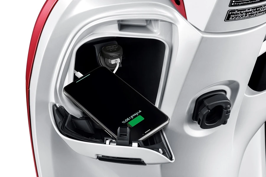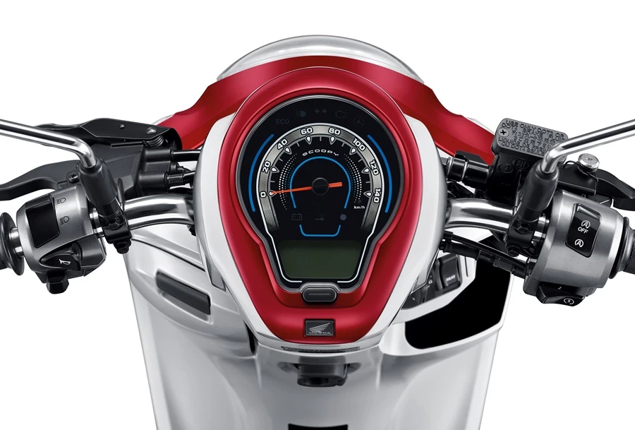 New Honda Scoopy โดดเด่นด้วย Modern Ring LED Headlight ดีไซน์สุด Iconic และ Muti-Meter สไตล์ใหม่แสดงผลครบครัน พร้อมด้วยเครื่องยนต์ eSP เจเนอเรชันใหม่ 110 ซีซี และหัวฉีด PGM-FI ขับสนุกประหยัดน้ำมันขั้นสุด และตอบโจทย์ไลฟ์สไตล์คนรุ่นใหม่ด้วยฟังก์ชันอำนวยความสะดวกรอบคัน ไม่ว่าจะเป็นช่องชาร์จไฟสำรอง USB Type A และช่องเก็บของใต้เบาะขนาดใหญ่