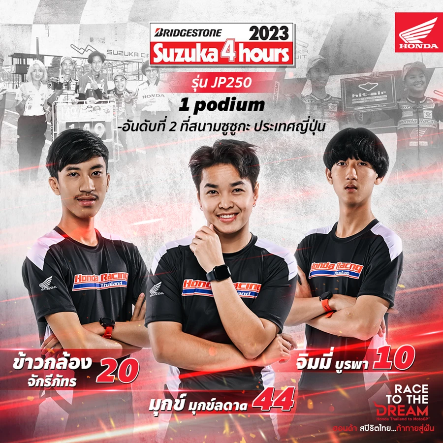 การแข่งขันศึกทรหด เอ็นดูรานซ์ระดับตำนานของโลกอย่าง Suzuka 8 Hours ที่สนามซูซูกะ ประเทศญี่ปุ่น ชิพ-นครินทร์ ได้รับคัดเลือกให้ร่วมทีมฮอนด้า เอเชีย ดรีม เรซซิ่ง วิท โชวะ พร้อมเพื่อนร่วมทีม โมฮัมหมัด ซัควาน ไซดี้ นักบิดมาเลเซีย และ แอนดี้ ฟาริด อิซดิฮาร์ คว้าอันดับ 8 มาครองอย่างยิ่งใหญ่ และ การแข่งขันเอ็นดูรานซ์ รายการ Suzuka 4 Hours ส่งทีมลุยศึกในรุ่น JP250 ด้วยรถแข่ง Honda CBR250RR หมายเลข 149 โดย มุกข์-มุกข์ลดา นักบิดสาวแกร่งพร้อมสองดาวรุ่งอย่าง ข้าวกล้อง-จักรีภัทร และ จิมมี่-บูรพา สร้างผลงานอย่างร้อนแรง สามารถคว้าตำแหน่งรองแชมป์มาครองได้สำเร็จ นอกจากนี้ยังส่งดาวรุ่งอย่าง จิมมี่-บูรพา ลงแข่งขันในรายการ เอ็มเอฟเจ ออล เจแปน โร้ด เรซ แชมเปี้ยนชิพ” รุ่น ST600 เพื่อเก็บสะสมประสบการณ์สู่ระดับโลกในอนาคต