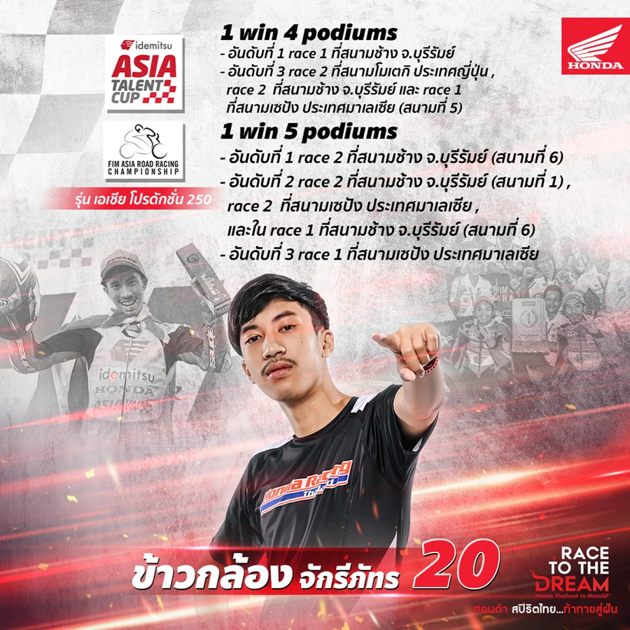 ฮอนด้า เรซ ทู เดอะ แชมเปี้ยน รวมถึงส่งกำลังใจเชียร์นักบิดฮอนด้าทุกคนได้ที่เฟซบุ๊กแฟนเพจ เรซ ทู เดอะ ดรีม :