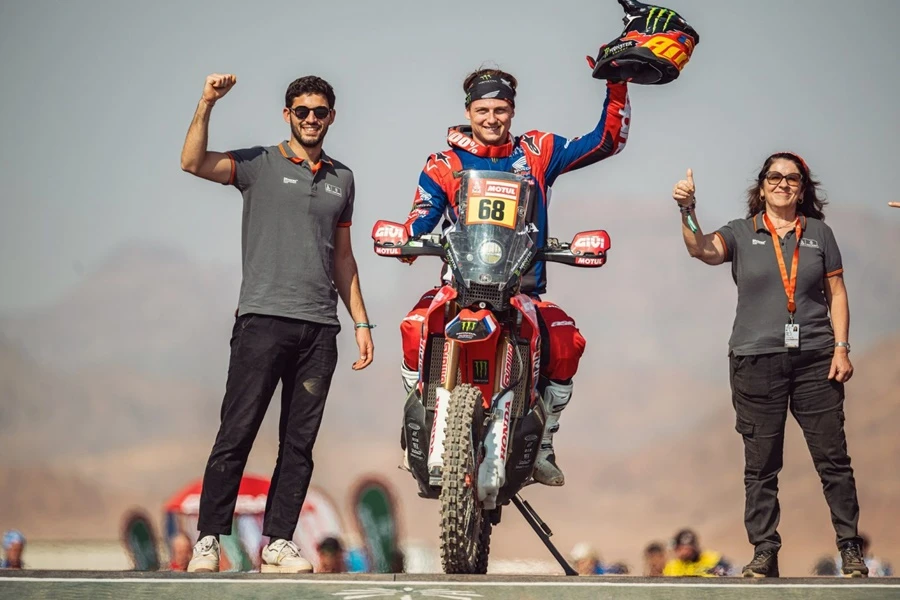 Honda CRF450 Rally โชว์ฟอร์มโหดอย่างต่อเนื่องใน หลังคว้าชัย 2 อันดับแรก ในสเตจที่ 5 โดยผลงานการคว้าชัยของ พาโบล ควินตานินญ่า หมายเลข 7 ที่สามารถเร่งฟอร์มได้สำเร็จ ตามติดมาด้วยทีมเมทอย่าง เอเดียน ฟาน เบเวอเรน หมายเลข 42 ที่คว้าอันดับที่ 2 ท่ามกลางทะเลทราย บนเส้นทางสุดโหดกว่า 645 กิโลเมตร เมื่อวันที่ 10 มกราคม ที่ผ่านมา