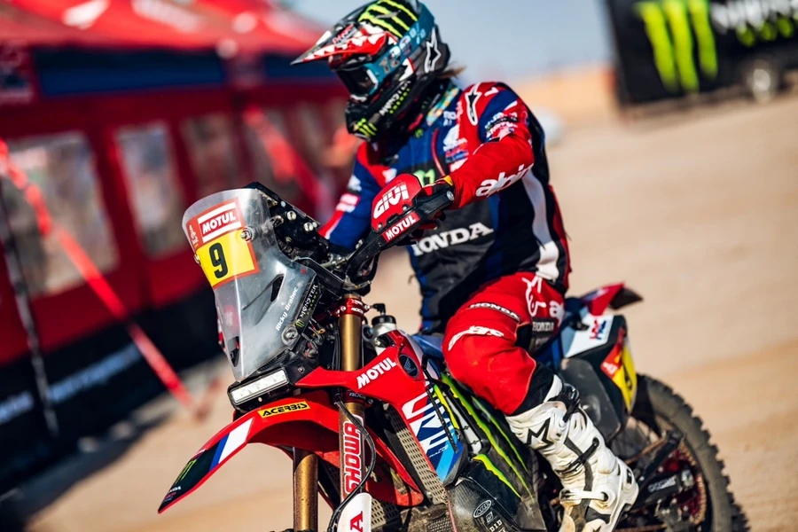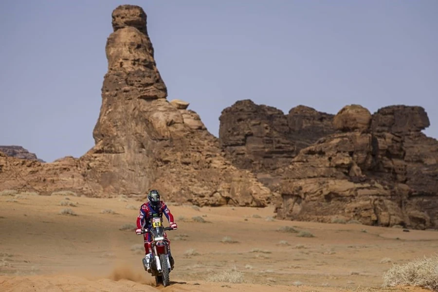 Honda CRF450 Rally หมายเลข 68 คว้าชัยแข่งจัดอันดับเปิดสนาม จากการแข่งขันสุดหฤโหด ท่ามกลางสภาพอากาศร้อนระอุของภูมิประเทศทะเลทราย ที่ อัลลูลา ประเทศซาอุดิอาระเบีย เมื่อวันที่ 5 มกราคม ที่ผ่านมา