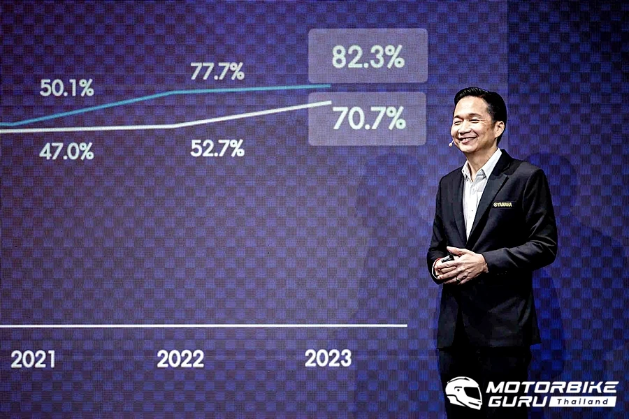 สำหรับปี 2566 ที่ผ่านมา ตลาดรวมยอดจดทะเบียนรถจักรยานยนต์ในประเทศไทยทั้งหมดอยู่ที่ 1,877,919 คัน ถือว่าเติบโตขึ้นจากการคาดการณ์ในปี 2565 อยู่เล็กน้อย ส่วนยามาฮ่ามียอดจดทะเบียนอยู่ที่ 269,682 คัน โดยมีส่วนแบ่งการตลาดอยู่ที่ 14.4% ของตลาดรวมรถจักรยานยนต์ไทย
