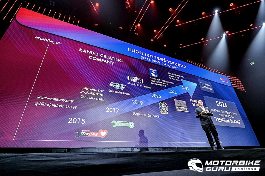 นายภาณุพล กิตติคำรณ ผู้จัดการใหญ่ด้านการค้า บริษัท ไทยยามาฮ่ามอเตอร์ จำกัด กล่าวเสริมถึงกลยุทธ์รูปแบบการตลาดในปี 2567 ว่า “สำหรับแผน และรูปแบบการตลาดเพื่อมัดใจกลุ่มลูกค้าของยามาฮ่าในปีนี้ เรามีแนวทางการเสริมสร้างความแข็งแกร่งสู่ความเป็น Premium Brand กับนโยบายการขาย และการตลาดเฉพาะกลุ่มมากยิ่งขึ้น พร้อมร่วมมือกับพันธมิตรทางธุรกิจในการส่งเสริมการขาย เพื่อมอบประสบการณ์ที่ประทับใจให้กับลูกค้าผ่านกิจกรรมต่างๆ ตลอดทั้งปี 2567