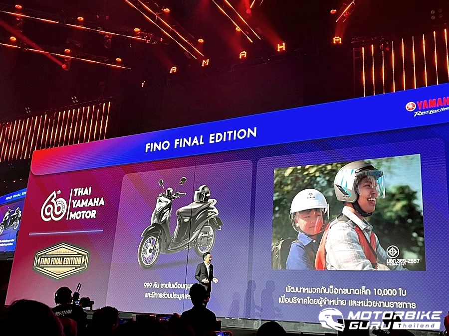 และนี่คือส่วนผสมของความสำเร็จของยามาฮ่าในปีที่ผ่านมา ซึ่งทำให้ยามาฮ่าเป็นตราสินค้าที่อยู่คู่กับสังคมไทยมาอย่างยาวนานถึง 60 ปี และในโอกาสครบรอบ 60 ปี ไทยยามาฮ่ามอเตอร์ เราจึงส่ง YAMAHA FINO Final Edition ดีไซน์พิเศษ จำนวนจำกัด รถออโตเมติกที่อยู่คู่กับชาวไทยมาอย่างยาวนาน เพื่อเป็นการเฉลิมฉลองในวาระดังกล่าว