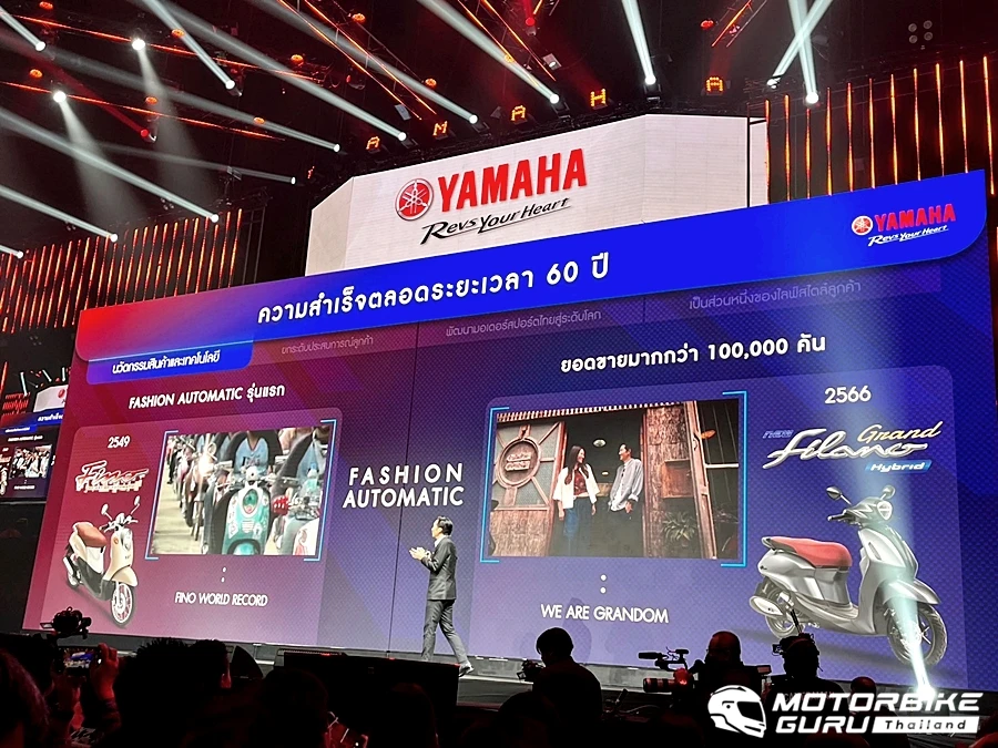 - นวัตกรรมสินค้า และเทคโนโลยี: ส่งผ่านความสำเร็จสู่ความเป็นผู้นำยอดขายกลุ่มรถสปอร์ตมาอย่างต่อเนื่อง เป็นผู้นำยอดขายกลุ่มรถออโตเมติกแฟชั่น ซึ่งส่งผลให้ YAMAHA GRAND FILANO HYBRID ได้รับการตอบรับที่ดีจากชาวไทย ด้วยยอดจำหน่ายรวมมากถึง 1 แสนคันในปี 2566