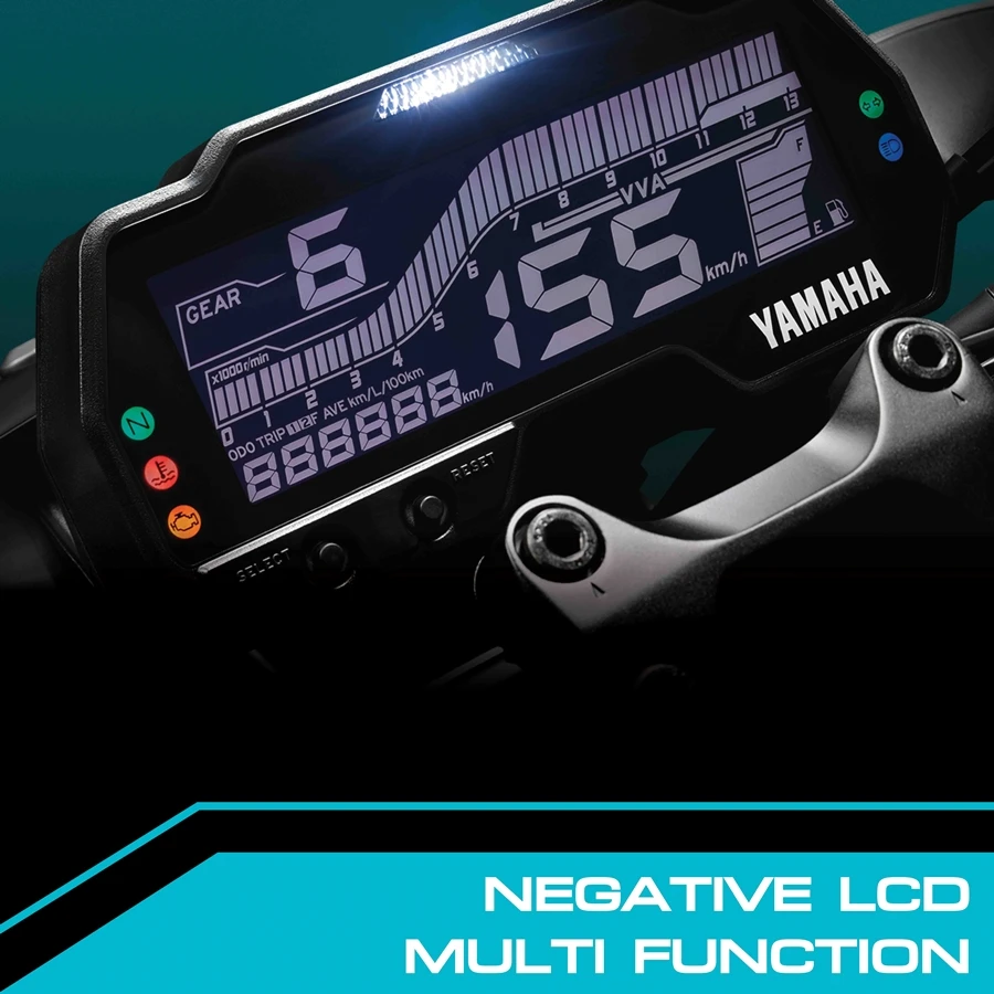 New Yamaha MT-15 ยังคงโดดเด่นด้วยเอกลักษณ์แห่งสายซ่าตัวจริงตามสไตล์ MT-Series ด้วยฟีเจอร์ล้ำสมัย ไม่ว่าจะเป็น MONO FOCUS LED ไฟหน้าที่มาพร้อมเทคโนโลยีใหม่ Mono Focus LED สว่างชัดในการขับขี่, หน้าปัด NEGATIVE LCD มีสไตล์ด้วย Multi-function พร้อมตัวเลขบอกตำแหน่งเกียร์ ระบบไฟเตือนเปลี่ยนเกียร์ (Shift light)
