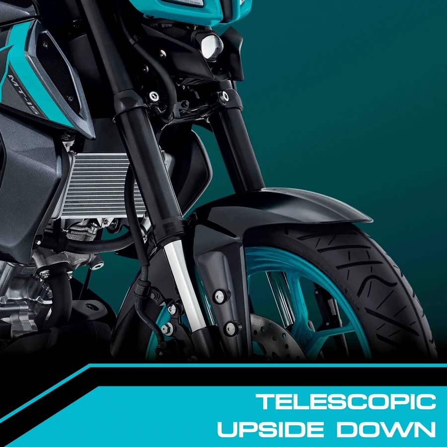 นอกจากนี้ New Yamaha MT-15 ยังให้ฟิลลิ่งการขับขี่แบบเน็คเก็ตสปอร์ต และฟีลลิ่งการขับขี่แบบเน็คเก็ตสปอร์ตเต็มอารมณ์ ด้วย TELESCOPIC UPSIDE DOWN ระบบกันสะเทือนหน้าแบบโช้คอัปหัวกลับที่ช่วยดูดซับแรงกระแทกได้ดี ควบคุมตัวรถได้อย่างมั่นใจ พร้อมด้วยระบบกันสะเทือนหลัง ALUMINIUM SWING ARM สวิงอาร์มอะลูมิเนียมแบบไดแคส (Diecast) และแบบโมโนครอสร่วมกับกระเดื่องซับแรง เพื่อเพิ่มสมรรถนะการทรงตัวที่ดียิ่งขึ้น