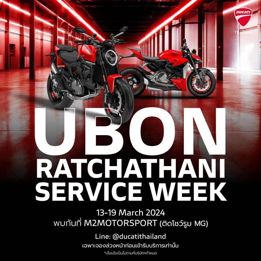 ดูคาติ ประเทศไทย เพิ่มระยะเวลารับประกันตัวรถทุกคันจากเดิม 3 ปี เป็น 4 ปีเต็ม พร้อมส่งแพ็คเกจบริการดูแลบำรุงรักษาหลังการขาย Ducati Service Package ให้ลูกค้าที่ออกรถปีนี้ มีความอุ่นใจ โดยสามารถนำรถเข้าเซอร์วิสตามรอบได้ฟรีนาน 3 ปี หรือ 60,000 กิโลเมตร เผยแผนเดินหน้าขยายโชว์รูมและศูนย์บริการให้ครอบคลุมทั่วประเทศรองรับการเติบโต พร้อมเตรียมจัดงาน Grand Opening ดูคาติ พัทยา โชว์รูมเต็มรูปแบบสาขาใหม่ ต้นเดือนเมษายนที่จะถึงนี้