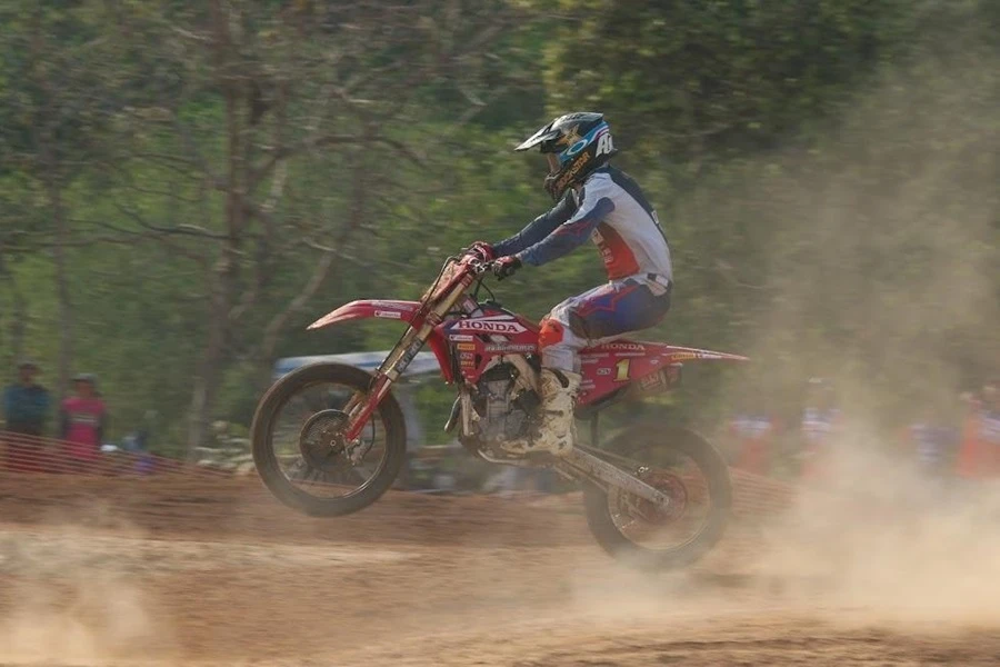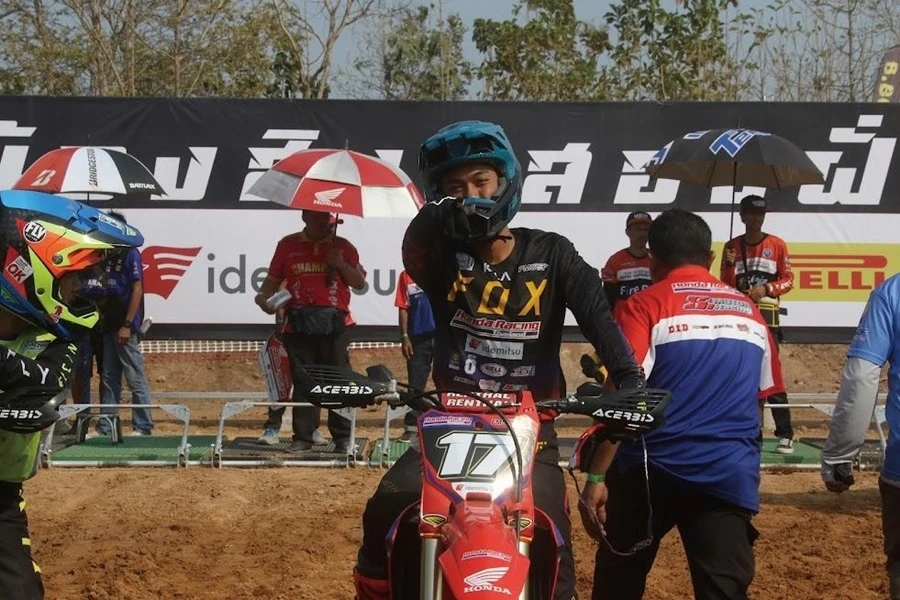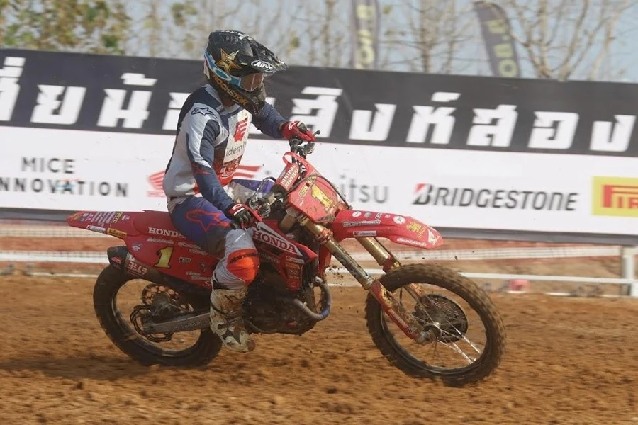อินทรีแซงค์-กฤษฎา จำรูญจารีต ยอดนักบิดแชมป์ประเทศไทย 4 สมัย โชว์ผลงานเยี่ยมรุ่นท็อปสุดของรายการอย่าง MX250-A บิด Honda CRF250R หมายเลข 17 สังกัดทีม Honda Racing Thailand S Motor Racing ใส่หัวใจนักสู้ไล่แซงคู่แข่งขึ้นคว้าอันดับที่ 2 มาครองได้สำเร็จ