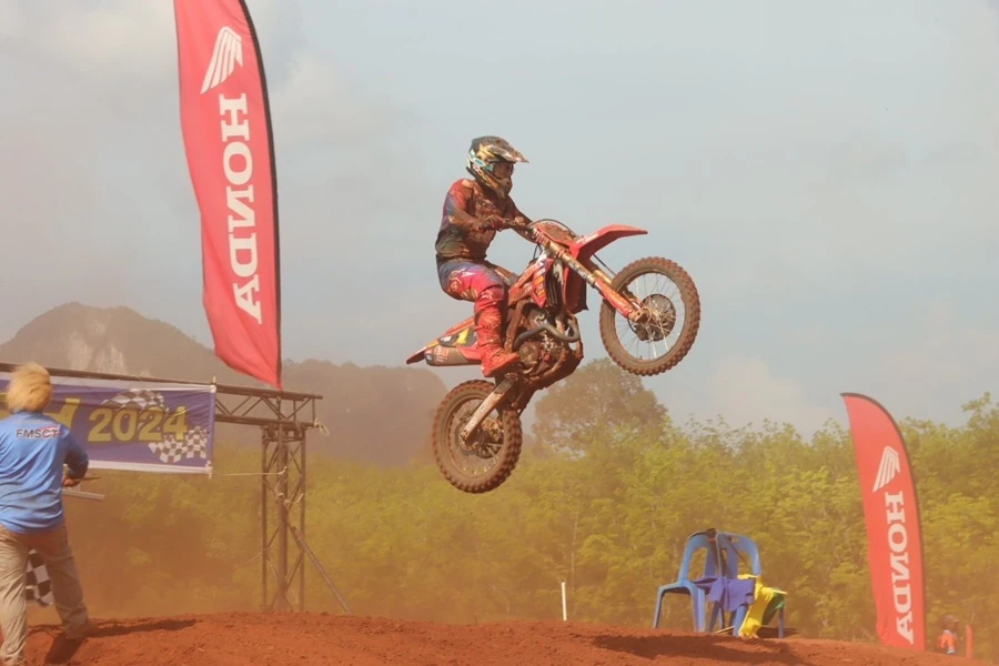 การแข่งขัน FMSCT Thailand Motocross 2024 ในรุ่นท็อปสุดของรายการอย่าง MX250-A สองนักบิดทางฝุ่นฮอนด้า บิดโชว์สมรรถนะ Honda CRF250R อย่างยอดเยี่ยม อินทรีแซงค์-กฤษฎา หมายเลข 17 สังกัดทีม Honda Racing Thailand S Motor Racing ควอลิฟายในอันดับที่ 9 และ ยศ-ภานุพงศ์ หมายเลข 1 สังกัดทีม Honda ส.จ.โก๋ DRTC IDEMITSU ชาญยนต์ WRC Singha ควอลิฟายมาเป็นอันดับที่ 4