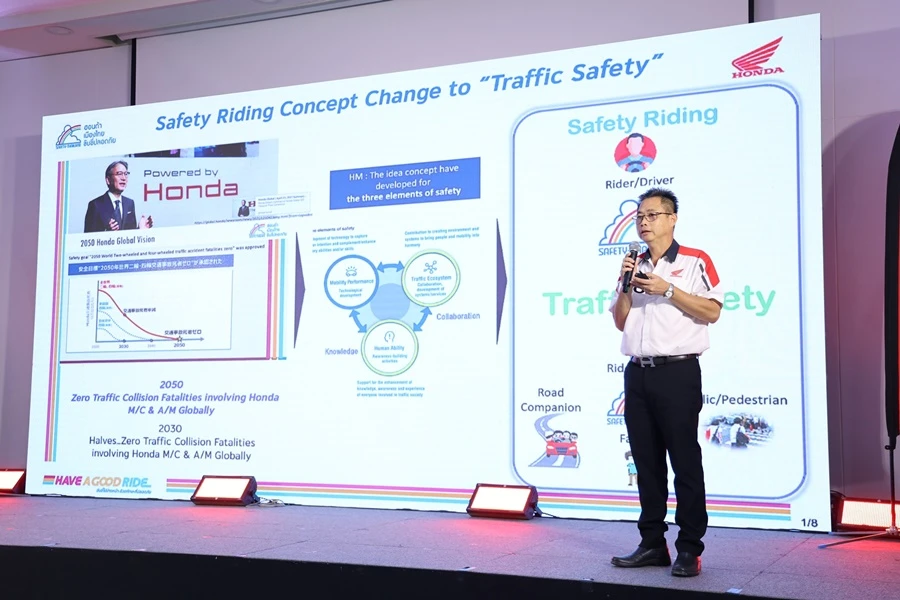 “ด้วย 3 แผนงานหลักดังกล่าว ถือเป็นกลยุทธ์สำคัญของเป้าหมายหลักที่จะทำให้อุบัติเหตุลดลง ตามนโยบายหลักของฮอนด้ามอเตอร์ที่ได้ประกาศเป็น Global Vision โดยตั้งเป้าลดจำนวนผู้เสียชีวิตจากอุบัติเหตุที่เกิดกับรถจักรยานยนต์และรถยนต์ฮอนด้าทั่วโลก ให้เป็นศูนย์ภายในปี 2593” มร. ชิเกโตะ คิมูระ กล่าวทิ้งท้าย