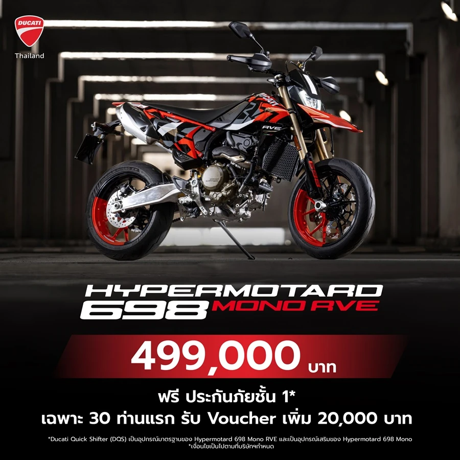 ดูคาติ ประเทศไทย โดย บริษัท โมโตเร อิตาเลียโน เป็นผู้นำเข้าและผู้จัดจำหน่ายรถจักรยานยนต์ดูคาติอย่างเป็นทางการรายเดียวในประเทศไทย ตั้งแต่วันที่ 1 กรกฎาคม 2564 สามารถร่วมสัมผัสประสบการณ์ความแรงที่เหนือกว่าเพื่อความสนุกในการขับขี่ไม่รู้จบของ Ducati Hypermotard 698 Mono ทั้งสองรุ่น ได้ที่โชว์รูม Ducati เปิดให้บริการทุกวัน ตั้งแต่เวลา 08.30 – 17.30 น. ศูนย์บริการเปิดให้บริการวันจันทร์ ถึง วันเสาร์ ตั้งแต่เวลา 08.30 – 17.30 น. ผู้สนใจสามารถโทรสอบถามข้อมูลหรือนัดหมายเข้าทดลองขับขี่ได้ที่ Ducati Bangkok (สุวรรณภูมิ) 02-737-8787, Ducati Bangkok (ประดิษฐ์มนูธรรม) 02-021-1888, Ducati Phitsanulok 061-864-9999, Ducati Lopburi 036-740-421, Ducati Phuket 088-757-4129, Ducati Pattaya 038-418-500