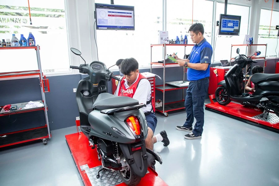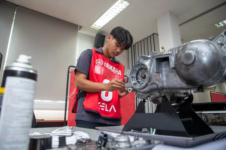 พร้อมกันนี้ทาง บริษัท ไทยยามาฮ่ามอเตอร์ จำกัด ได้ร่วมมือกับสมาคมวิทยาลัยเทคโนโลยี และอาชีวศึกษาเอกชนแห่งประเทศไทยในพระราชูปถัมภ์ สมเด็จพระเทพรัตนราชสุดาฯ สยามบรมราชกุมารี จัดตั้งศูนย์การเรียนการสอนใน 20 สถาบันทั่วประเทศ เพื่อถ่ายทอดเทคโนโลยีชั้นนำของยามาฮ่าให้กับเยาวชนไทย เพิ่มทักษะความรู้ใหม่ให้ก้าวทันโลกปัจจุบันที่เดินหน้าไปอย่างรวดเร็ว โดยมีอุปกรณ์การเรียนการสอนในหมวดวิชารถจักรยานยนต์ที่ทันสมัย เทียบเท่าศูนย์บริการผู้จำหน่ายยามาฮ่า และเทคโนโลยีอันทันสมัยของรถจักรยานยนต์ยามาฮ่า และจัดการอบรมหลักสูตรวิชาชีพชั้นสูงให้กับนักเรียน นักศึกษา รวมถึงครูอาชีวศึกษา ซึ่งในปี 2566 ได้อบรมให้กับ นักเรียน นักศึกษา และครูอาชีวศึกษา ไปแล้วมากกว่า 30 วิทยาลัย นักเรียน นักศึกษาผ่านการอบรมมากกว่า 2,000 คน ทั่วประเทศ