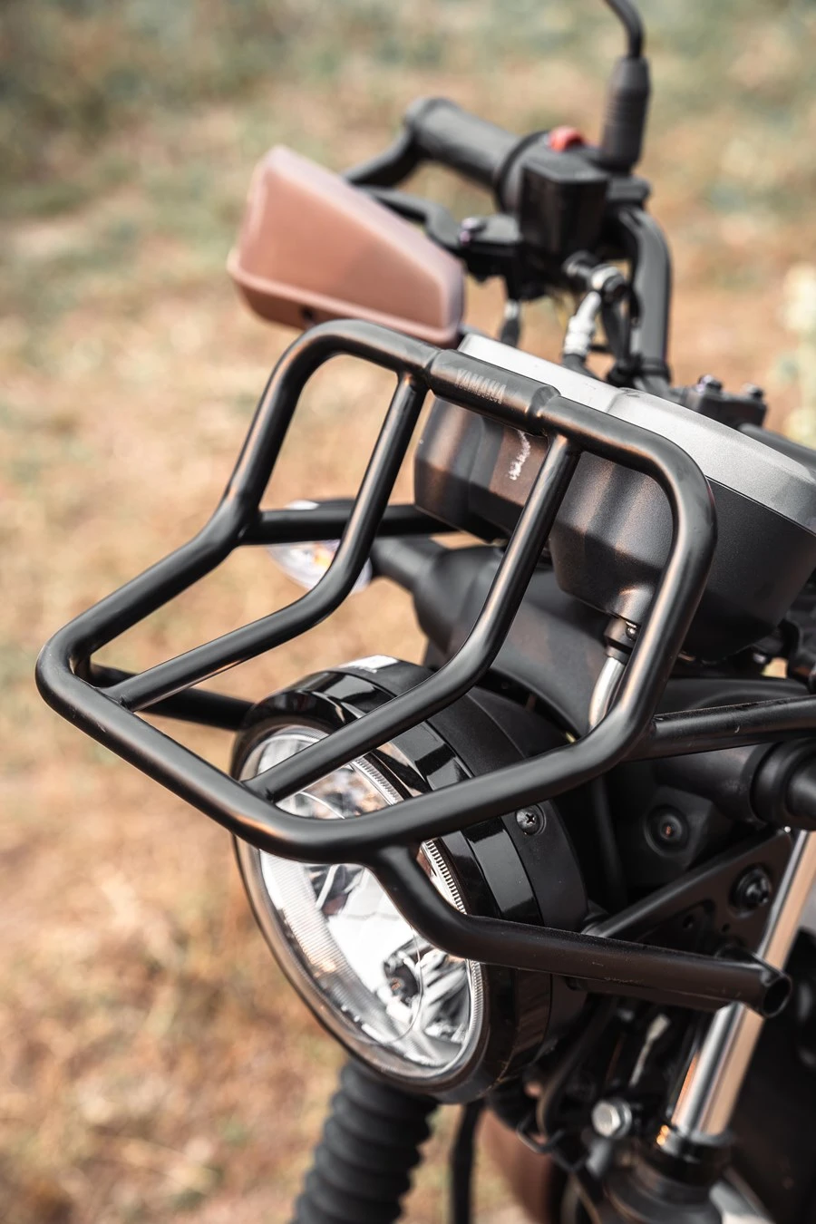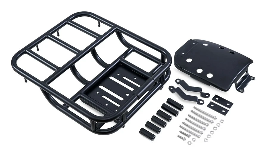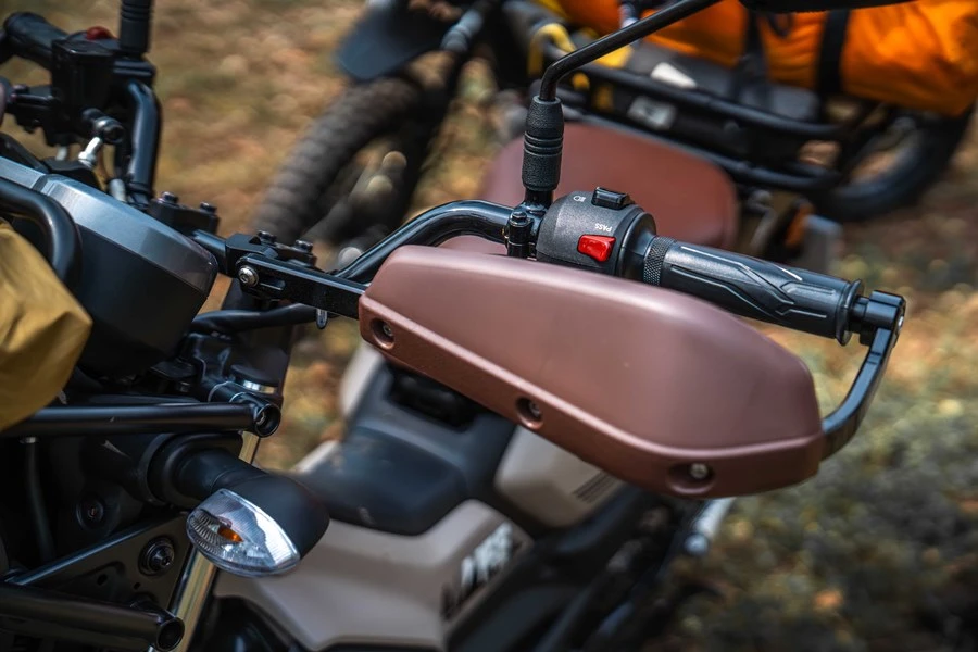 เริ่มจากส่วนบนของไฟหน้า ทำการติดตั้งตะแกรงสำหรับยึดสัมภาระ พร้อมขายึดสุดแกร่ง การ์ดแฮนด์ทั้งด้านซ้าย-ขวา เป็นแบบอะลูมิเนียม ซึ่งในรุ่นนี้เสริมตัวครอบการ์ดแฮนด์มาให้ด้วย มั่นใจได้ว่าเศษฝุ่นเศษหิน จะไม่บินมาโดนมืออย่างแน่นอน