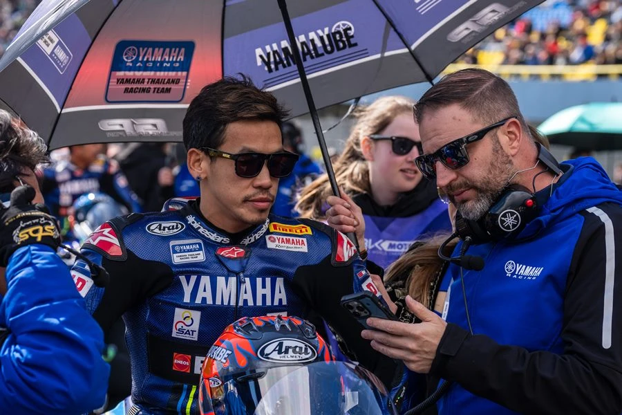 สองนักบิดไทยจาก ยามาฮ่า ไทยแลนด์ เรซซิ่งทีม ยกระดับความเร็วอย่างต่อเนื่องในศึก เวิลด์ ซูเปอร์สปอร์ต แชมเปียนชิพ 2024 สนาม 3 ที่ ทีที เซอร์กิต แอสเซ่น ประเทศเนเธอร์แลนด์ โดย ตี-อนุภาพ ซามูล และ ไอเดีย-กฤตภัทร เขื่อนคำ โดยการซ้อมครั้งแรกและครั้งเดียวมีขึ้นในช่วงบ่ายวันศุกร์ที่ 19 เมษายนที่ผ่านมา ต้องโดนฝนที่ตกลงมาอย่างหนักรบกวนตลอดการซ้อม