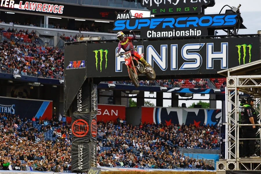 เจ็ตต์ ลอว์เรนซ์ ยอดนักบิด Team Honda HRC บิดโชว์สมรรถนะยอดรถแข่งทางฝุ่น Honda CRF450R คว้าชัยชนะ รั้งอันดับที่ 1 ทิ้งห่างคะแนนคู่แข่งในตารางคะแนนแชมป์เปี้ยนชิพ ศึก AMA Supercross สนามที่ 14 เมื่อสุดสัปดาห์ที่ผ่านมา ที่ Nissan Stadium ใน Nashville ประเทศสหรัฐอเมริกา