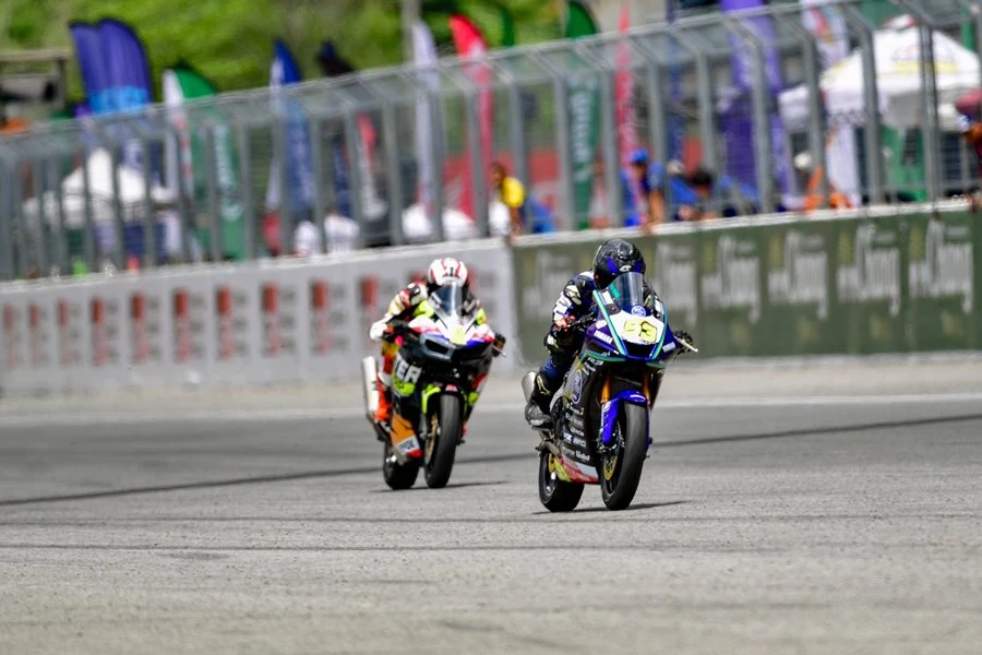เอส-พงศ์สถิต แสนหลวง #95 และ ฟูลมูน-พศิน ชมพูรัตน์ #53 สองนักแข่งดาวรุ่งในสังกัด YAMAHA bLU cRU THAILAND RACING TEAM ที่ลงลุยศึกการแข่งขันรถจักรยานยนต์ทางเรียบชิงแชมป์ประเทศไทยรายการ PlanB Media BRIC SuperBike 2024 ในรุ่น Sport Production 400 Junior โชว์ฟอร์มสุดร้อนแรงในการแข่งขันชิงความเป็นเจ้าความเร็ว 2 ล้อ ณ สนามช้าง อินเตอร์เนชั่นแนล เซอร์กิต
