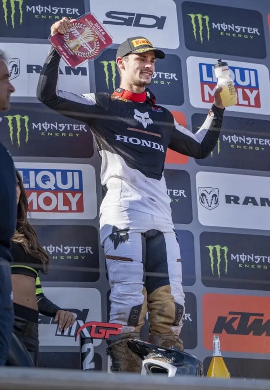 ผ่านมาในเรซที่ 2 ด้วยสภาพสนามที่เปลี่ยนไปอย่างสิ้นเชิง เมื่อกลับมาแข่งขันกันในสนามแห้ง ทิม ไกเซอร์ บิดสุดยอดเดิร์ทไบค์ Honda CRF450R พิสูจน์ถึงสมรรถนะที่พร้อมในทุกเงื่อนไข ออกตัวได้อย่างยอดเยี่ยม ขึ้นมารั้งอันดับที่ 2 ตั้งแต่ต้นเกมพร้อมไล่ล่าคู่แข่งอย่างต่อเนื่อง เข้าเส้นชัยอีกครั้งในอันดับที่ 2 ขึ้นทะยานแซงคู่แข่งรั้งอันดับที่ 1 ในตารางคะแนนสะสมชิงแชมป์ MXGP 2024 เป็นที่เรียบร้อยด้วยคะแนน 454 คะแนน