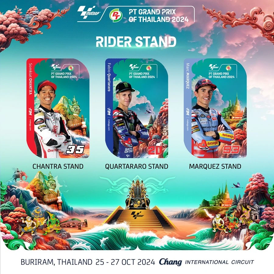 ล่าสุด ฝ่ายจัดฯได้เปิดเผยดีไซน์ บัตรชมการแข่งขันโมโตจีพี สนามประเทศไทย รายการ PT Grand Prix of Thailand ซึ่งประเทศไทยเป็นเจ้าภาพ World Event สุดยิ่งใหญ่อลังการ ที่จะระเบิดศึกในวันที่ 25-27 ตุลาคม 2567 ที่สนามช้าง อินเตอร์เนชั่นแนล เซอร์กิต จ.บุรีรัมย์ สร้างความฮืออาอีกครั้งให้กับแฟนความเร็วทั่วโลก