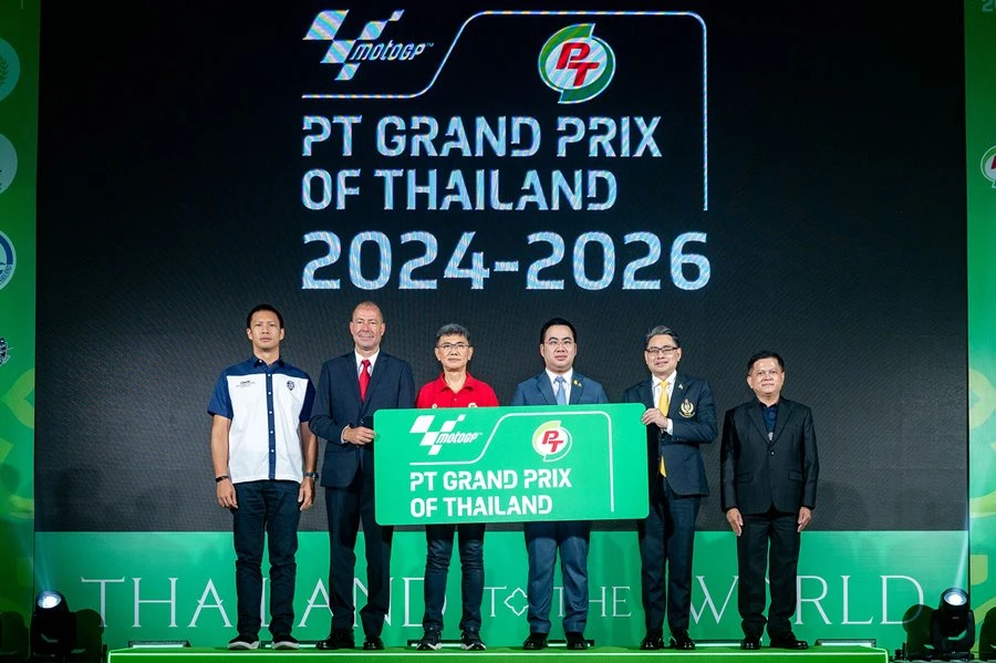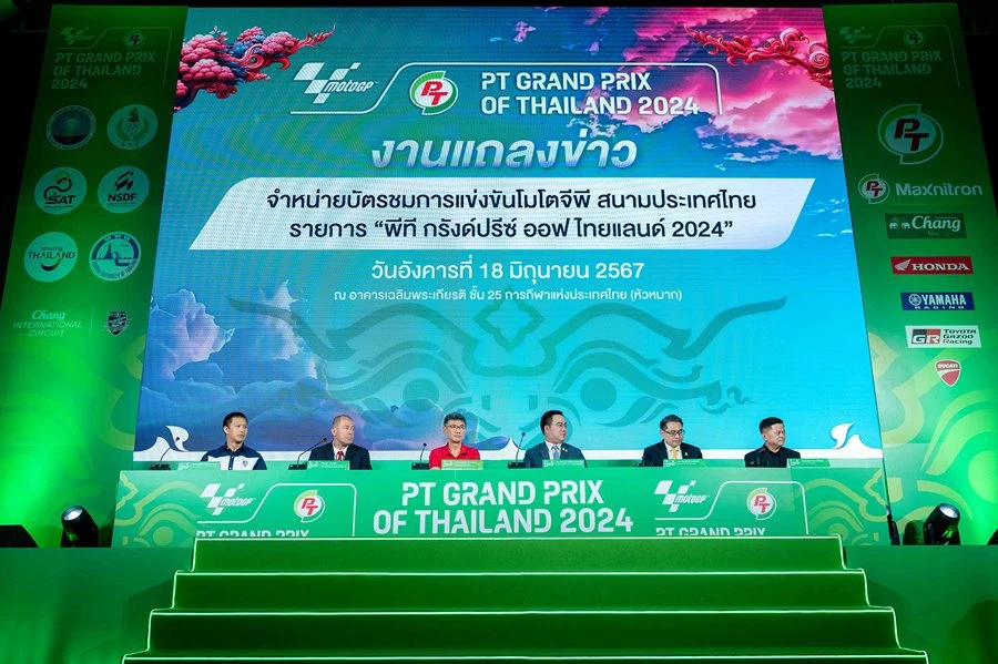 กระทรวงการท่องเที่ยวและกีฬา จัดแถลงข่าวการจัดการแข่งขันและเปิดจำหน่ายบัตรศึกรถจักรยานยนต์ทางเรียบชิงแชมป์โลก หรือ MotoGP ที่ประเทศไทยเป็นเจ้าภาพสนามที่ 18 พร้อมเปิดตัวไตเติ้ล สปอนเซอร์ใหม่ บริษัท พีทีจี เอ็นเนอยี จำกัด (มหาชน) หรือ PTG รู้จักกันดีในฐานะเจ้าของสถานีบริการน้ำมัน PT, ผลิตภัณฑ์น้ำมันหล่อลื่นเครื่องยนต์ PT Maxnitron และยังมีธุรกิจอื่นในเครือ เช่น แบรนด์ร้านกาแฟ พันธุ์ไทย, คอฟฟี่เวิล์ด รวมถึงศูนย์บริการรถยนต์ Autobacs ภายใต้ชื่อรายการ PT Grand Prix of Thailand 2024 เตรียมสร้างปรากฏการณ์ใหม่ระดับเวิลด์คลาส นำเสนออัตลักษณ์ความงดงามแบบไทย พร้อมเสิร์ฟประสบการณ์มอเตอร์สปอร์ต เฟสติวัล เต็มรูปแบบที่หาที่ไหนไม่ได้ โดยจะชิงชัยที่ สนามช้าง อินเตอร์เนชั่นแนล เซอร์กิต จ.บุรีรัมย์ ระหว่าง 25-27 ตุลาคม 2567 ถ่ายทอดความยิ่งใหญ่ไปกว่า 200 ประเทศทั่วโลก สู่ผู้ชม 800 ล้านคน โดยหลังเปิดจำหน่ายบัตรแกรนด์ สแตนด์ Sold Out ด้วยเวลา 03.12 นาที