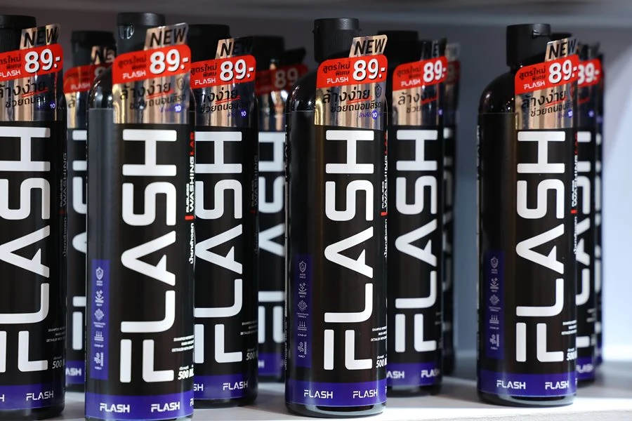 สำหรับน้ำยาล้างรถ Flash มีคุณสมบัติ Fast (ล้างเร็ว) Fresh (สะอาด) และ FLAWLESS (หมดจด) โดยจะช่วยขจัดคราบสกปรก โคลน และน้ำฝนที่เกาะติดตัวรถได้อย่างสมบูรณ์แบบ พร้อมทั้งเคลือบเงาในขั้นตอนเดียว ทำให้การดูรักษารถคันโปรดในช่วงหน้าฝนเป็นเรื่องง่ายสำหรับทุกคน