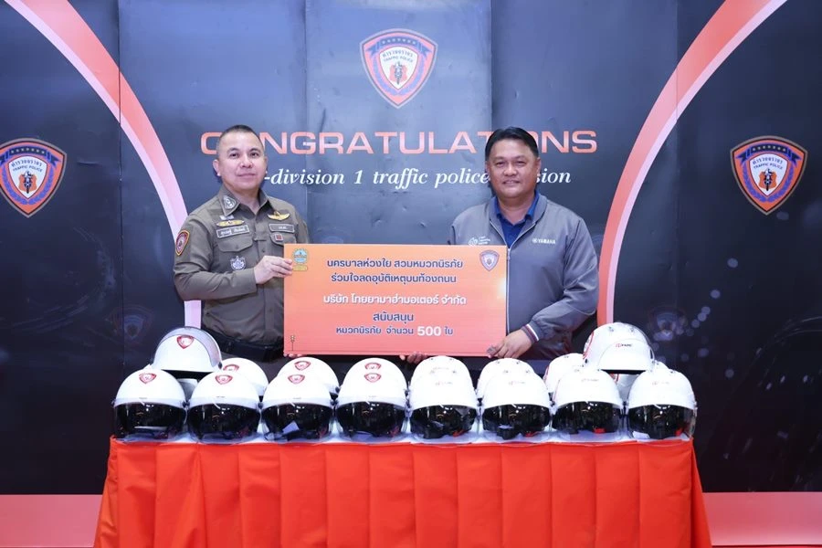 โดยการส่งมอบหมวกกันน็อกในครั้งนี้มีขึ้น ณ โถงอาคาร ชั้น 1 กองบังคับการตำรวจจราจร ถ.วิภาวดีรังสิต เมื่อเร็วๆ นี้