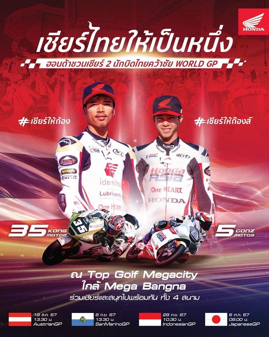 ฮอนด้า ชวนแฟนมอเตอร์สปอร์ตร่วมเชียร์ 2 นักบิดไทย