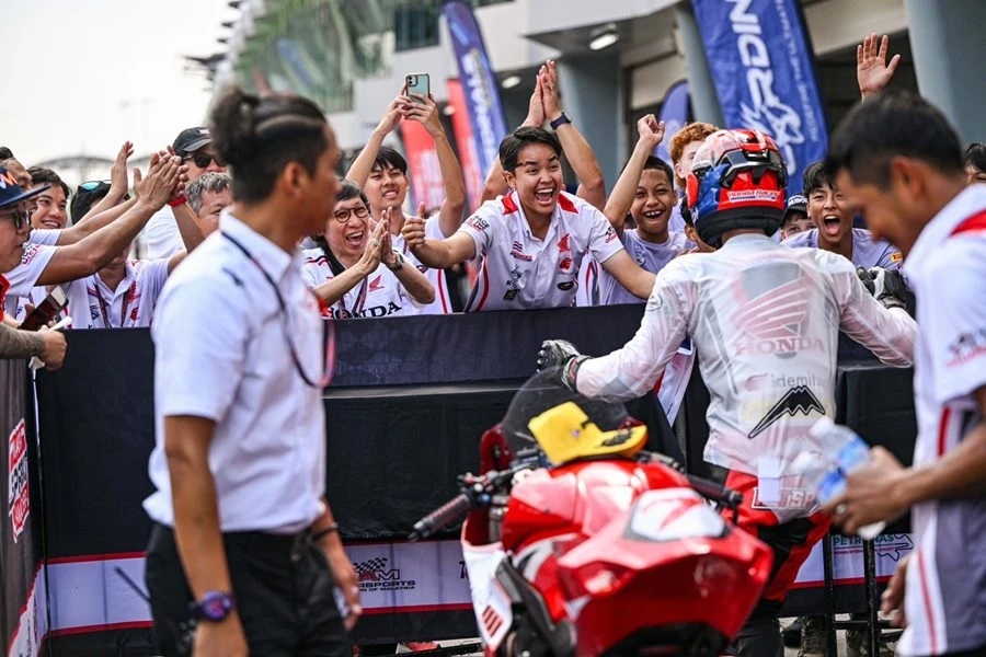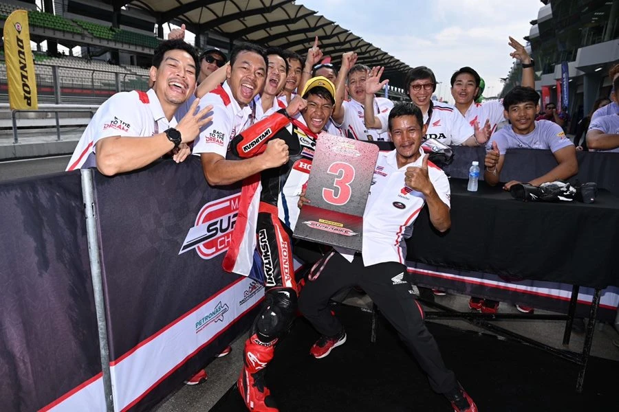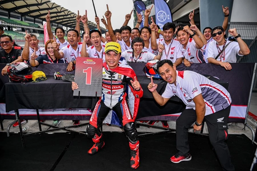 ไฮไลต์ของศึก มาเลเซีย ซูเปอร์ไบค์ แชมเปี้ยนชิพ 2024 อยู่ที่การลุ้นแชมป์ในรุ่นใหญ่ที่สุดอย่าง MSBK1000 ซึ่ง ชิพ-นครินทร์ นักบิดโมโตทรีคนแรกของไทยจาก ฮอนด้า เรซซิ่ง ไทยแลนด์ พารถแข่งหมายเลข 41 บิดเริ่มเกมจากกริดที่ 3 และเกาะกลุ่มไล่บี้หัวแถวกับนักบิดเจ้าถิ่นอย่างสุดมันส์ ก่อนจะบิดคว้าชัยชนะไปครองได้ทั้ง 2 เรซ ด้วยเวลา 21 นาที 23.707 วินาที ทะยานขึ้นมารั้งจ่าฝูงบนตารางคะแนนสะสม ด้วยคะแนน 74 คะแนน