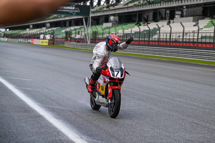 ต่อกันที่รุ่นใหญ่ MSBK 1000 ชิพ-นครินทร์ ดีกรีนักบิดโมโตทรีคนแรกของไทย เจ้าของรถแข่งหมายเลข 41 เริ่มเกมจากกริดที่ 3 ออกตัวยอดเยี่ยม ไล่บดนักบิดยอดฝีมือจากเอเชีย อย่างสุดมันส์ ก่อนเฉือนคว้าชัยชนะใน ศึก มาเลเซีย ซูเปอร์ไบค์ แชมเปี้ยนชิพ 2024 สนาม 2 เรซแรก ของรุ่น MSBK1000 ประเทศมาเลเซีย ด้วยเวลา 21 นาที 53.106 วินาที