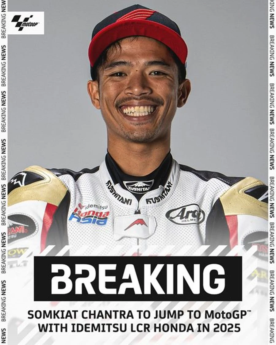 ก้อง-สมเกียรติ จันทรา ปัจจุบันกำลังแข่งขันในระดับ Moto2 กับ อิเดมิตสึ ฮอนด้า ทีม เอเชีย จะได้เลื่อนชั้นขึ้นไปในรุ่นสูงสุดของการแข่งขันมอเตอร์ไซค์ทางเรียบชิงแชมป์โลก หรือ MotoGP กับทีม ฮอนด้า แอลซีอาร์ ตั้งแต่ฤดูกาล 2025 เป็นต้นไป การเลื่อนชั้นในครั้งนี้ทำให้ ก้อง-สมเกียรติ เป็นนักแข่งชาวไทยคนแรกในประวัติศาสตร์ ที่ได้ลงแข่งขันศึกมอเตอร์ไซค์ทางเรียบชิงแชมป์โลก รุ่นสูงสุดแบบเต็มฤดูกาล