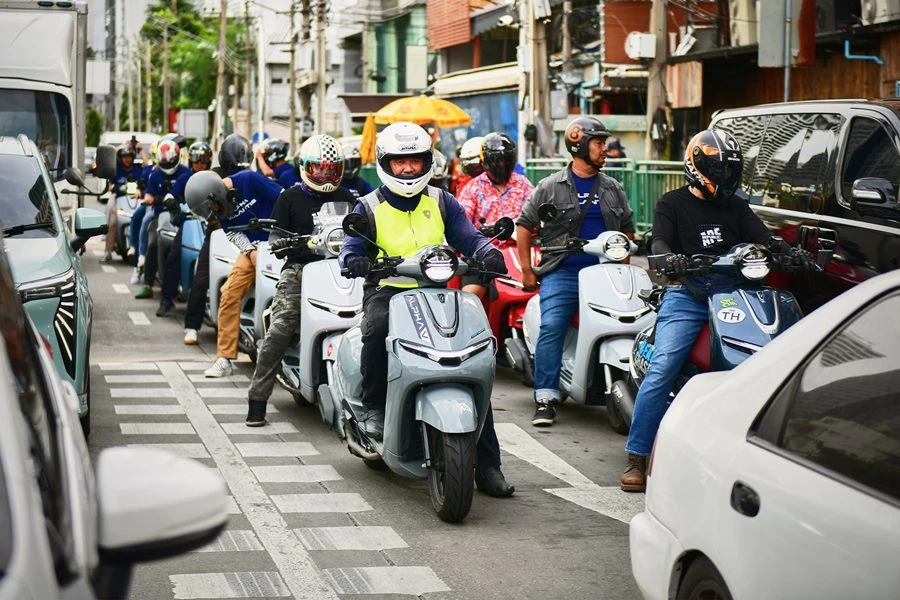 เมื่อพร้อมแล้ว!!! ได้เวลาออกเดินทางไปกับขบวน Alpha V. Shining Ride ขับขี่ไปบนเส้นทางถนนพระราม 3 ผ่านศูนย์การประชุมแห่งชาติสิริกิติ์ มุ่งหน้าสู่สะพานข้ามแยกคลองเตย เพื่อตัดเข้าถนนสาธุประดิษฐ์ ขบวน ALPHA VOLANTIS ขับขี่เรียงแถวอย่างสวยงาม สร้างสีสันบนถนนในเมืองยามเช้าให้คึกคักด้วยดีไซน์ตัวรถที่โดดเด่นสะท้อนตัวตนทุกการขับขี่ พร้อมตอบสนองไลฟ์สไตล์คนเมืองด้วยสมรรถนะที่คล่องตัว ก่อนนำขบวนทั้งหมดตรงไปยังจุดหมายที่ Craftsman Roastery & Brew Bar คาเฟ่ในโรงกลึงเก่า บรรยากาศสุดวินเทจ ที่มีทั้งความเท่ ความดิบ และความคลาสสิคอยู่ในที่เดียว
