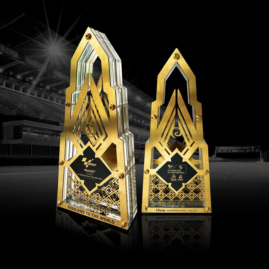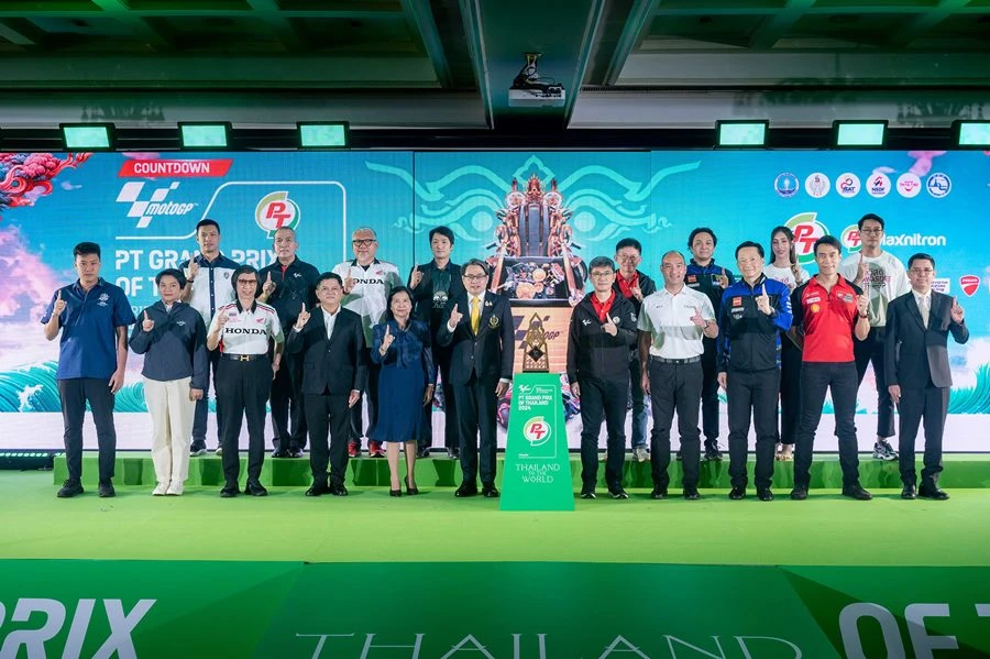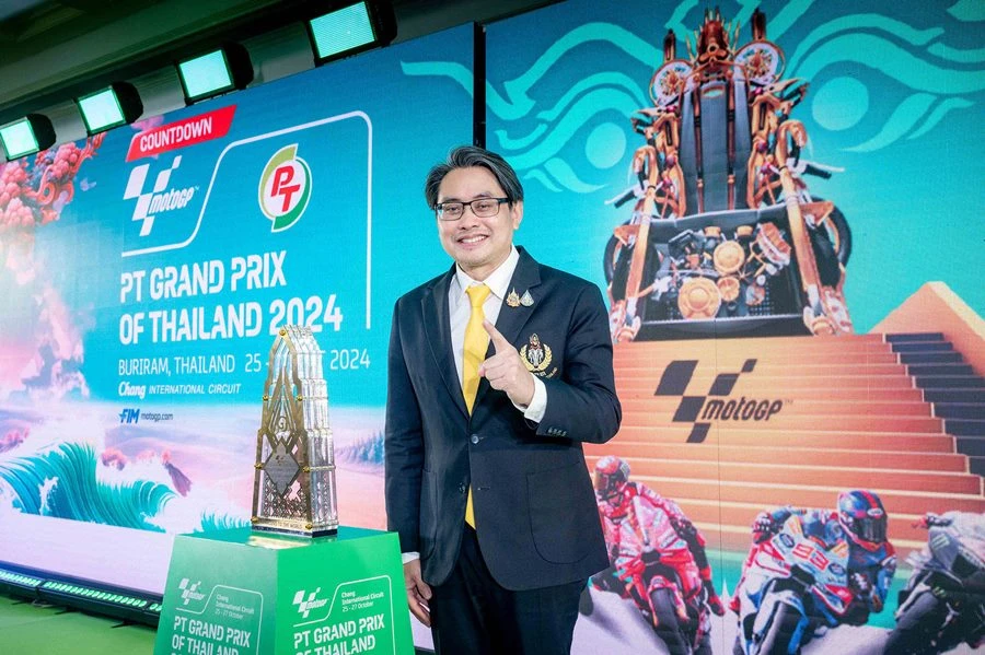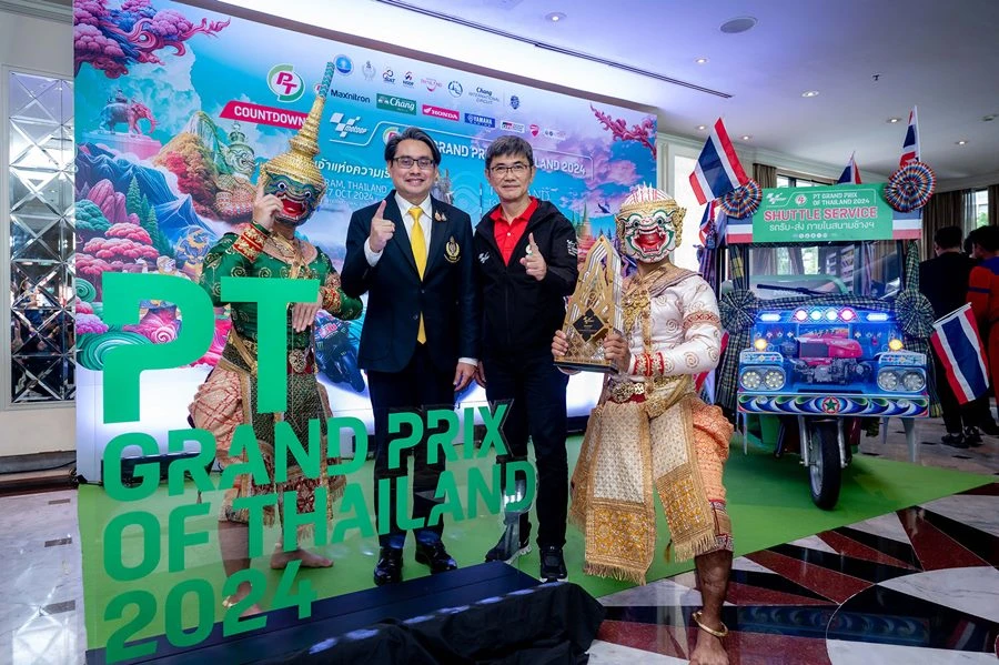 รัฐบาลไทย ผนึก ภาคเอกชน แถลงความพร้อมโค้งสุดท้ายสู่สุดยอดศึกสองล้อที่เร็วที่สุดและยิ่งใหญ่ที่สุดของโลก PT Grand Prix of Thailand 2024 ที่แฟนความเร็วทั่วโลกรอคอย ชูความพร้อมเดินเครื่องเต็มระบบ บูรณาการความร่วมมือทุกมิติ พร้อมเปิดตัวโทรฟี่ ThaiGP สง่างามด้วยธีม บัลลังก์เจ้าแห่งความเร็ว สไตล์ไทยโมเดิร์นผสานความงดงามปราสาทหินพนมรุ้ง โดยมีการนำชิ้นส่วนรถมอเตอร์ไซค์มาเป็นส่วนหนึ่งของถ้วยรางวัล กลางถ้วยมีสัญลักษณ์การพนมไหว้ สวัสดี สื่อถึงการต้อนรับอันอบอุ่นและการให้ความเคารพในแบบไทย เผยภายในงานจะได้พบกับจุดไฮไลท์ใหม่ Thai Thai Pavilion นำเสนอเสน่ห์แบบไทยสุดอลังการ 25-27 ต.ค.นี้ที่ จ.บุรีรัมย์ การันตีชื่อชั้นความมันส์ พร้อมสร้างความประทับใจและความสุขครบเครื่องระดับโลกสู่แฟนกว่า 800 ล้านคนทั่วโลกแล้ว