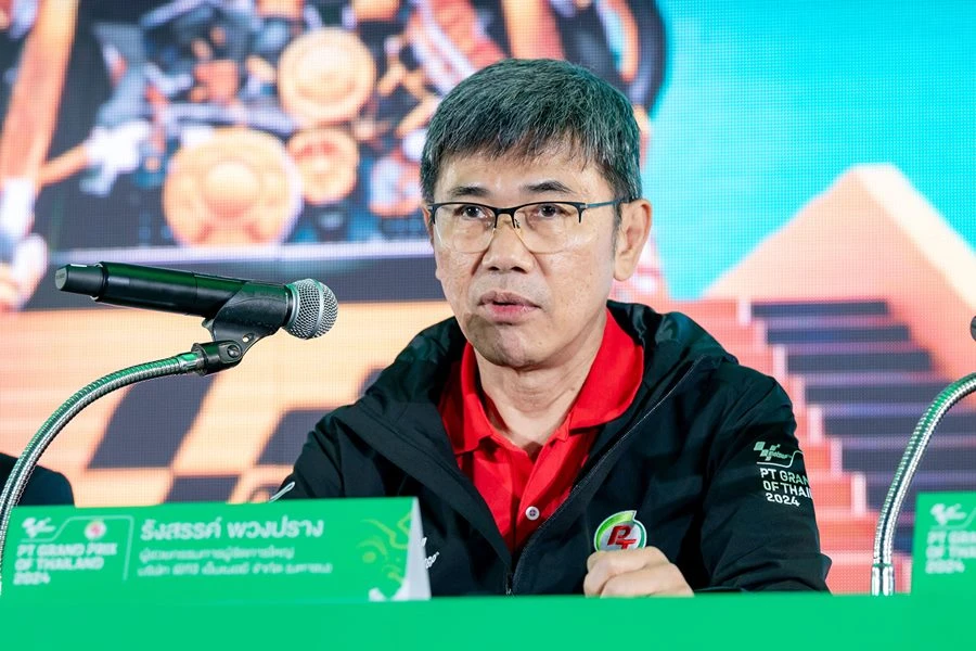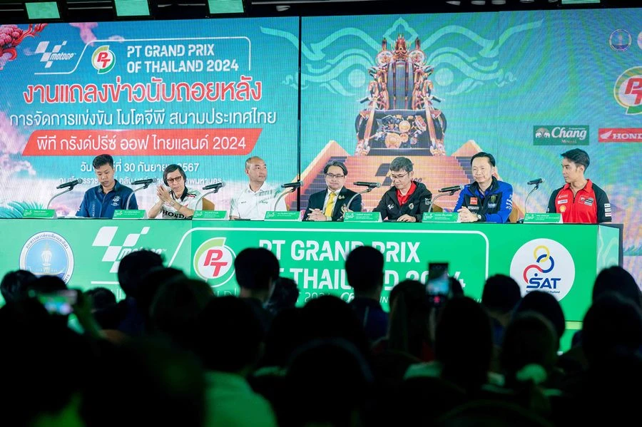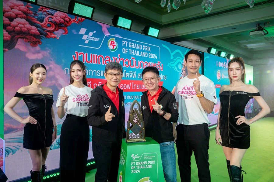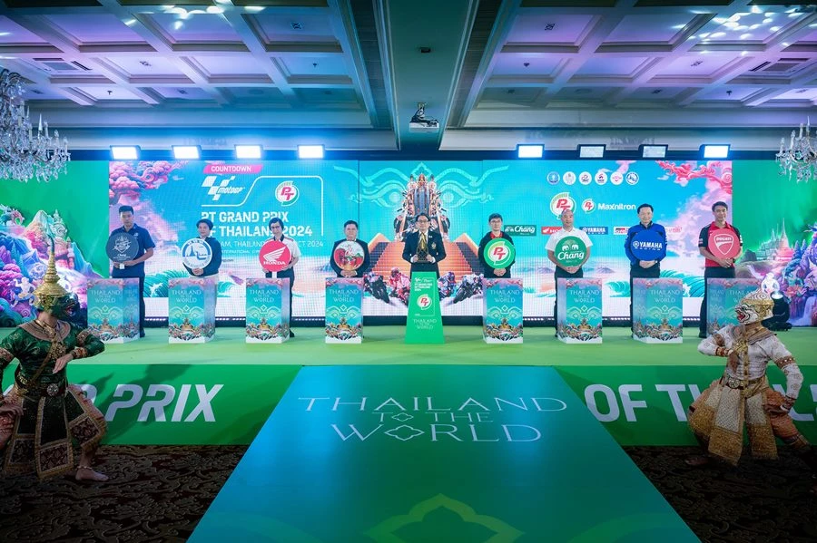 กระทรวงการท่องเที่ยวและกีฬา โดย การกีฬาแห่งประเทศไทย จัดแถลงข่าวนับถอยหลังการแข่งขันรถจักรยานยนต์ทางเรียบชิงแชมป์โลก หรือ โมโตจีพี ที่ประเทศไทยเป็นเจ้าภาพ ภายใต้ชื่อรายการ PT Grand Prix of Thailand 2024 ศึกสองล้อที่เร็วที่สุดและยิ่งใหญ่ที่สุดในโลก ระหว่าง 25- 27 ตุลาคม 2567 ที่ สนามช้าง อินเตอร์เนชั่นแนล เซอร์กิต จ.บุรีรัมย์ โดย ดร.ก้องศักด ยอดมณี ผู้ว่าการการกีฬาแห่งประเทศไทย เป็นประธาน พร้อมด้วยผู้สนับสนุนภาครัฐและเอกชน นำโดย จังหวัดบุรีรัมย์, การท่องเที่ยวแห่งประเทศไทย, กรมการขนส่งทางบก, บริษัท พีทีจี เอ็นเนอยี จำกัด (มหาชน), บริษัท ไทยเบฟเวอเรจ จำกัด (มหาชน) โดยน้ำแร่ธรรมชาติตราช้าง, บริษัท ไทยฮอนด้า จำกัด, บริษัท ไทยยามาฮ่ามอเตอร์ จำกัด, บริษัท โมโตเร อิตาเลียโน จำกัด (ดูคาติ ไทยแลนด์) รวมทั้ง อินฟลูเอนเซอร์ แพร-ทวินันท์ เพิ่มพูน และ ป้อง-ณวัฒน์ กุลรัตนรักษ์ ทัพสื่อมวลชน-ผู้สนับสนุนร่วมงานมากมาย