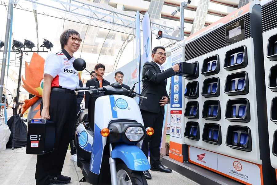 ด้าน ประธาน บริษัท ไทยฮอนด้า จำกัด กล่าวเสริมว่า “นับเป็นอีกหนึ่งก้าวสำคัญของไทยฮอนด้า ที่ได้ร่วมมือกับ MEA ในการร่วมกันส่งเสริมการใช้พลังงานสะอาด และขับเคลื่อนการใช้รถจักรยานยนต์ไฟฟ้าในประเทศไทย โดยไทยฮอนด้า มีความมุ่งมั่นที่จะขยายระบบนิเวศยานยนต์ไฟฟ้า EV Ecosystem ในประเทศไทยอย่างยั่งยืน ด้วย Honda BENLY e: ที่เราได้พัฒนาขึ้นเพื่อตอบสนองต่อการเปลี่ยนแปลงด้านพลังงานในอนาคต ใช้พลังงานสะอาดลดการปล่อยมลพิษ พร้อมตู้สับเปลี่ยนแบตเตอรี่มาตรฐานฮอนด้า Honda e: Swap Station ที่สามารถสับเปลี่ยนแบตเตอรีได้ภายใน 1 นาที และตู้ควบคุมอุณหภูมิตลอดการชาร์จเพื่อให้แบตฯ ปล่อยพลังงานที่เสถียรและปลอดภัย ภายใต้มาตรฐาน World Class Safety UNR136 รวมทั้งสิ้น 44 แห่ง ที่พร้อมให้บริการทั่วกรุงเทพฯ และปริมณฑล รวม 2 แห่งนี้ ซึ่งเป็นพื้นที่ให้บริการสำคัญ คือ ที่การไฟฟ้านครหลวง (สำนักงานใหญ่) คลองเตย และที่การไฟฟ้านครหลวงเขตบางนา ขอขอบคุณ MEA ในการสนับสนุนขยายสถานีสับเปลี่ยนแบตเตอร์รี่ Honda e: Swap ซึ่งเป็นส่วนสำคัญในการสร้างความมั่นใจให้ผู้ใช้รถจักรยานยนต์ไฟฟ้า ในอนาคตเรามีแผนที่จะขยายเพิ่มอีกอย่างต่อเนื่อง เพื่อรองรับตลาดรถจักรยานยนต์ไฟฟ้าที่มีแนวโน้มเพิ่มขึ้น อย่างมีประสิทธิภาพ โดยในปีนี้เราตั้งเป้าส่งมอบรถจักรยานยนต์ไฟฟ้าให้กับผู้ (เช่า) ใช้จำนวน 850 คัน”