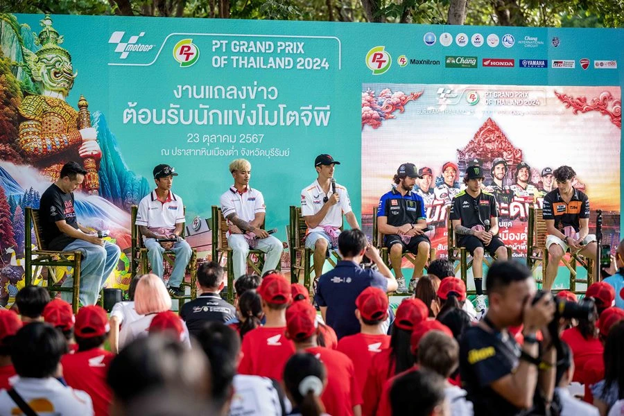 การแข่งขันรถจักรยานยนต์ทางเรียบชิงแชมป์โลก หรือ MotoGP เดินทางมาถึงสนามประเทศไทย (ThaiGP) โดยเหล่านักแข่ง และขบวนตู้คอนเทนเนอร์ทีมแข่งได้เดินทางมาถึง จ.บุรีรัมย์ เป็นที่เรียบร้อยแล้ว โดยรายการนี้จะใช้ชื่อ PT Grand Prix of Thailand 2024 จะมีขึ้นระหว่างวันที่ 25-27 ตุลาคมนี้ ที่ สนามช้าง อินเตอร์เนชั่นแนล เซอร์กิต จ.บุรีรัมย์ ซึ่งเป็นการแข่งขันกีฬาระดับโลกรายการใหญ่ที่สุด ที่มีการจัดในประเทศไทย โดยมีผู้ติดตามชมมากกว่า 800 ล้านคนทั่วโลก จาก 220 ประเทศทั่วโลก