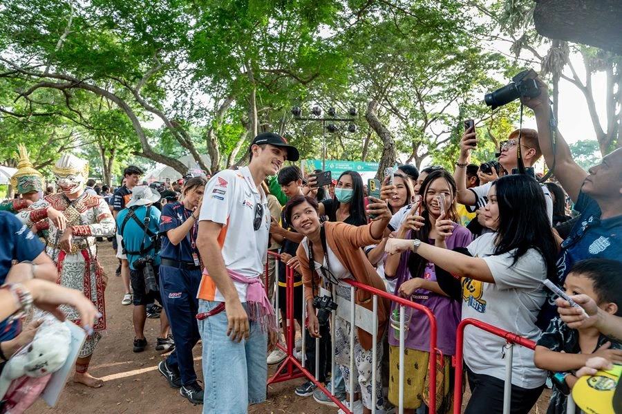บรรดาทัพนักบิดชื่อดังระดับโลกอย่าง มาร์ค มาร์เกซ และ ฟรานโก้ โมบิเดลลี่ รวมถึงเหล่านักบิดคนอื่นๆ เดินทางถึงท่าอากาศยานบุรีรัมย์ โดยมี นายจำเริญ แหวนเพ็ชร รองผู้ว่าราชการจังหวัดบุรีรัมย์ ในฐานะประธานคณะกรรมการฝ่ายการแสดงต้อนรับและจัดแสดงสินค้า พร้อมด้วยหัวหน้าส่วนราชการ หน่วยงานภาคเอกชน ประชาชน และเหล่าบรรดาแฟนคลับโมโตจีพีที่มารอรับ