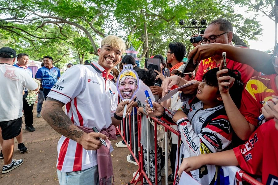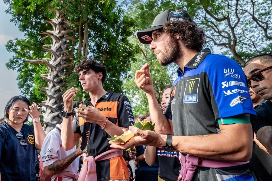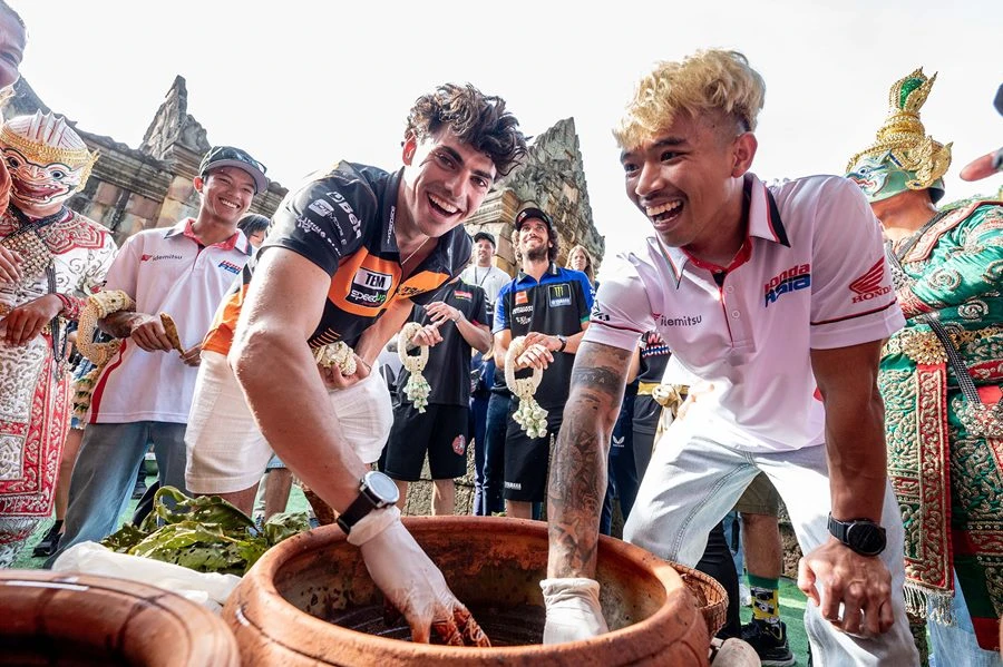 โดยนักบิด ได้แก่ อเล็กซ์ รินส์, ลูก้า มารินี่, มาร์โก้ เบซเซคกี้, เฟอร์มิน อัลเดอร์แกร์ รวมทั้ง 2 นักบิดไทยที่ลงทำการแข่งขัน ก้อง-สมเกียรติ จันทรา และ ก๊องส์-ธัชกร บัวศรี ในธีมเสน่ห์อีสาน พาท่องเที่ยวย้อนยุค ชมปราสาทหินเมืองต่ำ อ.ประโคนชัย จ.บุรีรัมย์ พร้อมด้วยเหล่าคณะผู้บริหารฝ่ายจัดการแข่งขัน แฟนคลับและกองทัพสื่อมวลชนร่วมงานมากมาย ทั้งนี้ ถ่ายทำวีดีโอประชาสัมพันธ์ ทีมงานดอร์น่า สปอร์ต เจ้าของลิขสิทธิ์ จะนำไปเผยแพร่ในช่วงการแข่งขัน ระหว่าง 25- 27 ตุลาคม 2567 ที่ สนามช้างฯ สู่สายตาแฟนมอเตอร์สปอร์ตทั่วโลก