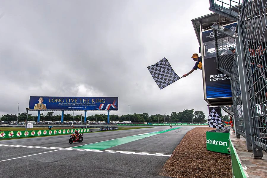 และ ศศลักษณ์ ไหประโคน” แข้งบุรีรัมย์และทีมชาติไทย ฅนบุรีรัมย์ที่ได้รับเกียรติเป็นผู้โบกธงตราหมากรุก ในการแข่งขันรุ่น MotoGP โดยนับเป็นชาวไทยและลูกหลานบุรีรัมย์คนที่ 2 ที่ได้โบกธงในงานระดับโลก ต่อจาก ลิซ่า-ลลิษา มโนบาล ที่ได้โบกธงตราหมากรุก ในการแข่งขันรถฟอร์มูล่าวันหรือ F1 มาแล้ว