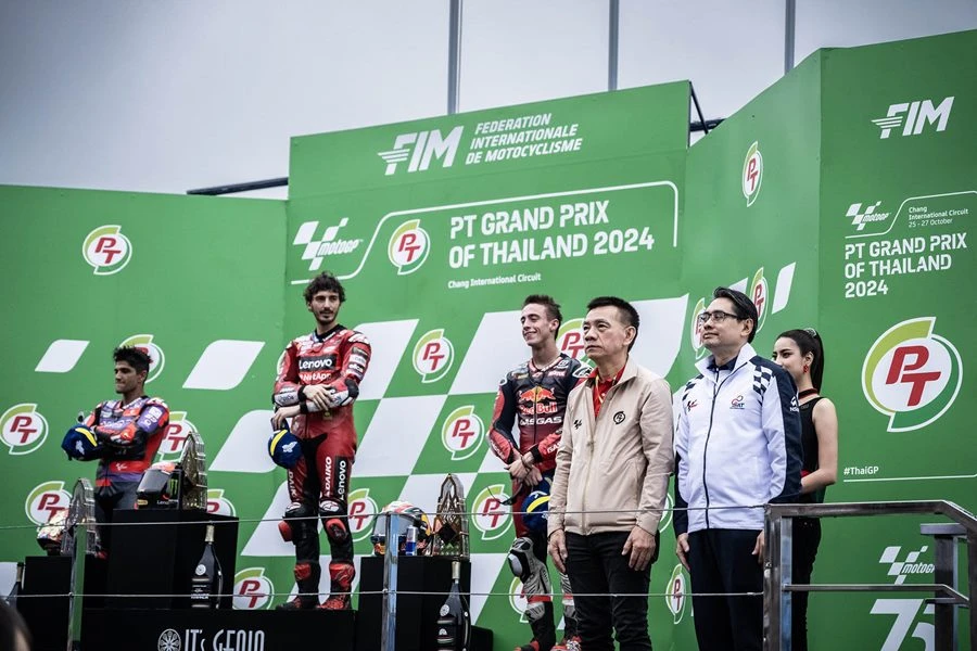 ปิดฉากลงอย่างสวยงามและสุดประทับใจ ทั้งความยิ่งใหญ่อลังการ ธีมเสน่ห์อีสาน ฅนบุรีรัมย์ รวมทั้ง หมูเด้ง ที่มาสร้างไวรัลไปทั่วโลก เติมเต็มสุดสัปดาห์แห่งความมันส์ของสุดยอดศึกสองล้อที่เร็วที่สุดและยิ่งใหญ่ที่สุดในโลกกับการแข่งขันจักรยานยนต์ทางเรียบชิงแชมป์โลก หรือ โมโตจีพี รายการ พีที กรังด์ปรีซ์ ออฟ ไทยแลนด์ 2024 ณ สนามช้าง อินเตอร์เนชั่นแนล เซอร์กิต จ.บุรีรัมย์ นี่คืออีกหนึ่งความภูมิใจที่ยิ่งใหญ่ของคนไทยทั้งประเทศในการจัดการแข่งขันมหกรรมกีฬาที่ยิ่งใหญ่ที่สุดที่เคยจัดขึ้นบนผืนแผ่นดินไทย