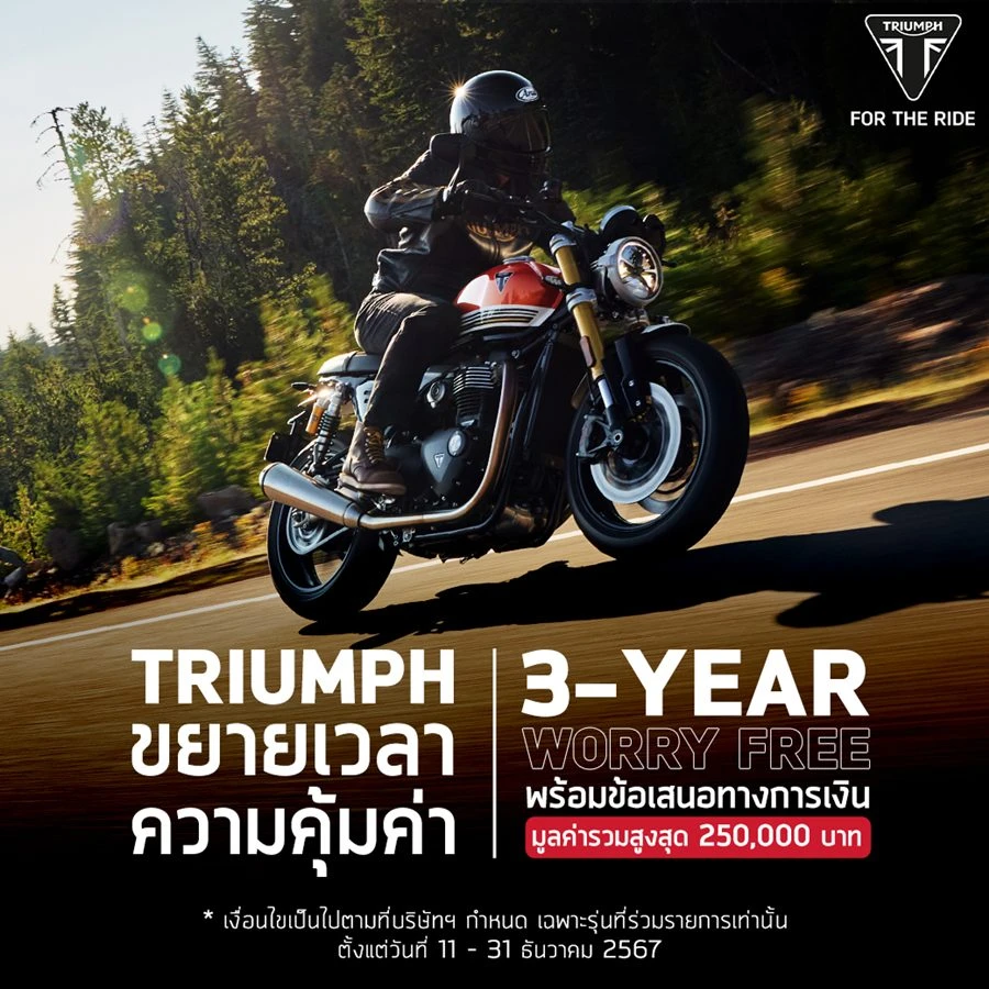 ตั้งแต่วันที่ 11 - 31 ธันวาคม 2567 โดยผู้สนใจสามารถสอบถามรายละเอียดผ่านผู้แทนจำหน่ายไทรอัมพ์ทั้ง 12 แห่งทั่วประเทศ