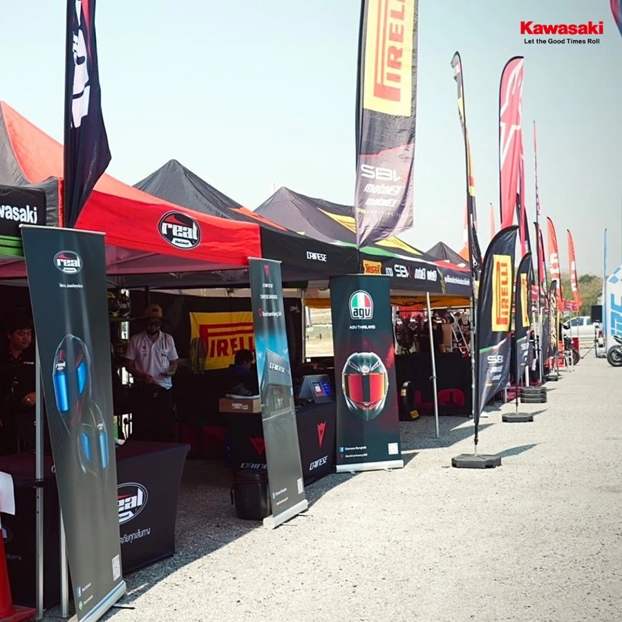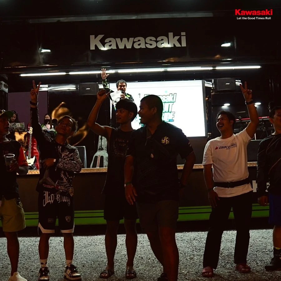 นอกจากนี้ ต้องขอขอบคุณเหล่าสปอนเซอร์ใจดีที่มาร่วมออกบูธ พร้อมมอบข้อเสนอ ส่วนลดสุดพิเศษเพื่อลูกค้าคาวาซากิทุกๆท่าน ไม่ว่าจะเป็น W Standard, D.I.D., Pirelli, Cordona, Bridgestone, Real helmet, Alpinestar, IRC Tire, Dainese, AGV, Mitas, และ Ohlins อีกทั้งยังขนของที่ระลึกมามอบให้กับลูกค้าที่เข้าร่วมกิจกรรมปาร์ตี้ตอนเย็นกับเราอย่างมากมาย แจกกันจนแทบไม่ได้กลับบ้าน พลางเพลิดเพลินไปกับดนตรีเพราะๆจากวงปฐวี และในวันอาทิตย์ความสนุกเหล่านี้ก็ยังดำเนินกันต่อไปอีกครึ่งวัน ก่อนที่จะปิดสนาม แยกย้ายกันเดินทางกลับบ้านโดยสวัสดิภาพเรียกได้ว่าเป็นกิจกรรมที่เปี่ยมไปด้วยความสุข สนุกสนานแบบที่ชาวคาวาซากิคิดถึง หลังจากห่างหายกันไปกว่า 2 ปี ซึ่งแน่นอนว่ากิจกรรมสนุกสุดมันส์แบบนี้ จะเกิดขึ้นอีกอย่างแน่นอน แต่จะเป็นที่ไหน เมื่อไหร่นั้น รอติดตามที่หน้าเพจ Kawasaki Motors Thailand ไว้ได้เลย