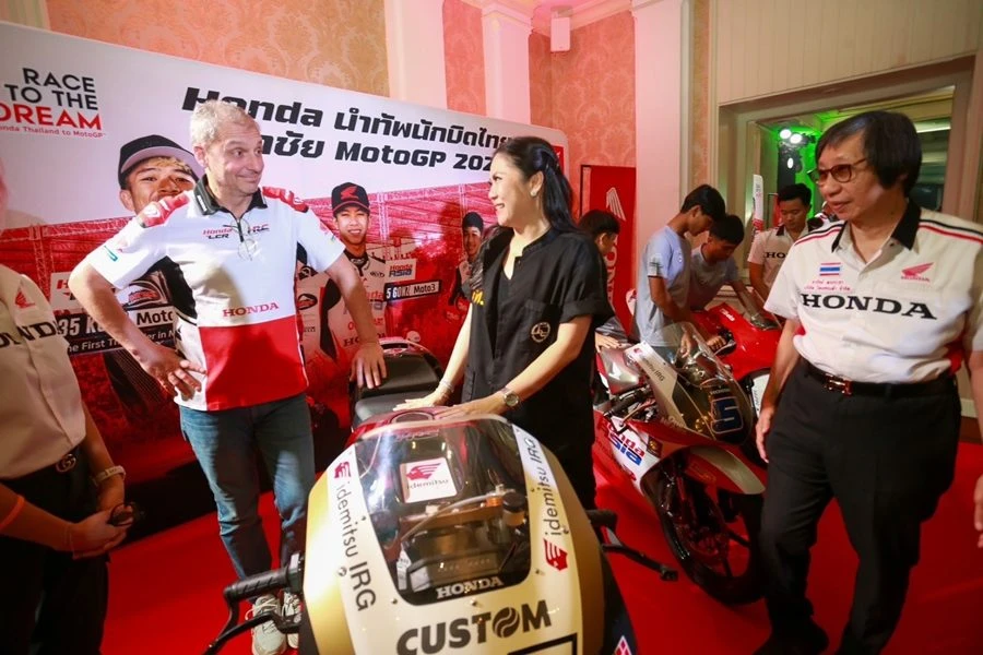 ดร.อารักษ์ พรประภา ประธาน บริษัท ไทยฮอนด้า จำกัด กล่าวว่า "สำหรับสนามแรกของ โมโตจีพี ซึ่งจะมีขึ้นในประเทศไทย ผมอยากให้คนไทยทุกคนร่วมส่งแรงใจเชียร์ ก้อง-สมเกียรติ นักแข่งโมโตจีพีชาวไทยคนแรกในประวัติศาสตร์ ซึ่งจะเริ่มดวลสปรินต์เรซกันตั้งแต่วันเสาร์ที่ 1 มีนาคมนี้ และเมนเรซในวันอาทิตย์ที่ 2 มีนาคมนี้ รวมถึงเก่งเล็กอย่าง ก๊องส์-ธัชกร ในรุ่นเล็กอย่างโมโตทรีด้วย"
