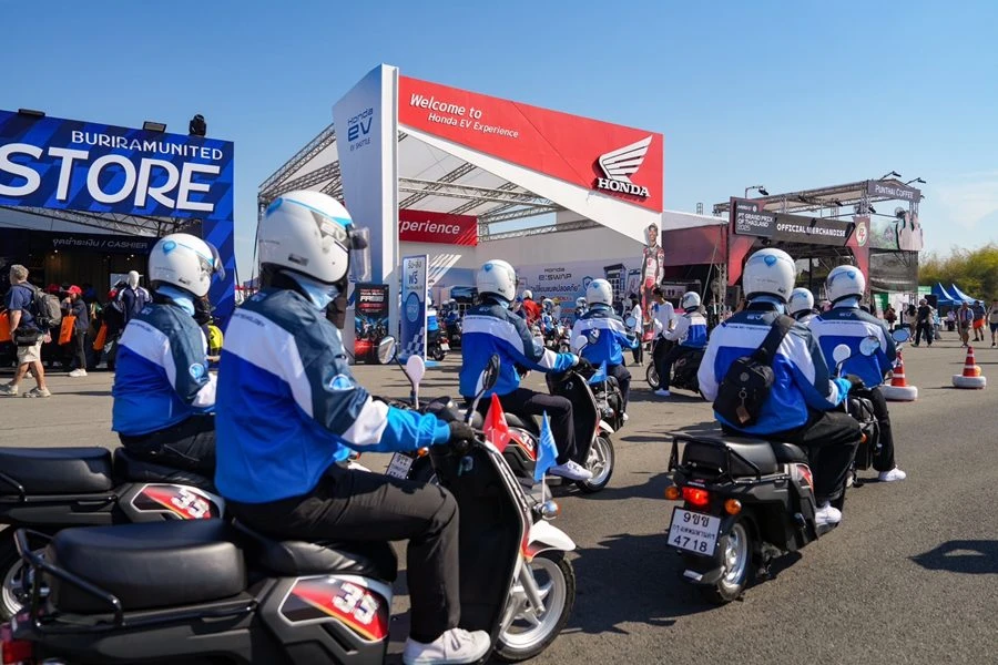 โดยปีนี้ภายในงานการแข่งขันจักรยานยนต์ทางเรียบชิงแชมป์โลก รายการ พีที กรังด์ปรีซ์ ออฟ ไทยแลนด์ 2025 ทาง ไทยฮอนด้า จัดเตรียมรถจักรยานยนต์ไฟฟ้าฮอนด้าที่มีให้กว่า 30 คัน ไว้คอยบริการในโซน Welcome area EV Station ผ่านบริการ EV Shuttle รับ-ส่ง ชาวมอเตอร์สปอร์ตด้วยรถจักรยานยนต์ไฟฟ้า Honda BENLY e: