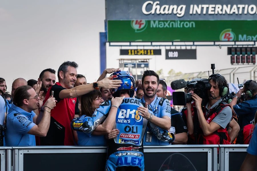 ศึกนี้พี่น้อง! มาร์ค มาร์เกซ แชมป์โลก 8 สมัยชาวสแปนิชจาก ดูคาติ เลอโนโว ทีม นำม้วนเดียวจบผงาดคว้าชัย สปรินต์เรซ เหนือคู่แข่งอย่าง อเล็กซ์ มาร์เกซ น้องชาย จาก เกรซินี เรซซิ่ง และทีมเมทในทีมโรงงานอย่าง ฟรานเชสโก้ บันยาญ่า ขณะ ก้อง-สมเกียรติ จันทรา นักบิดโมโตจีพีชาวไทยคนแรกจากฮอนด้า ประเดิมเรซแรกอย่างเป็นทางการด้วยผลงานน่าพอใจ ภายใต้เสียงเชียร์กระหึ่มของแฟนมอเตอร์สปอร์ตในบ้านเกิด