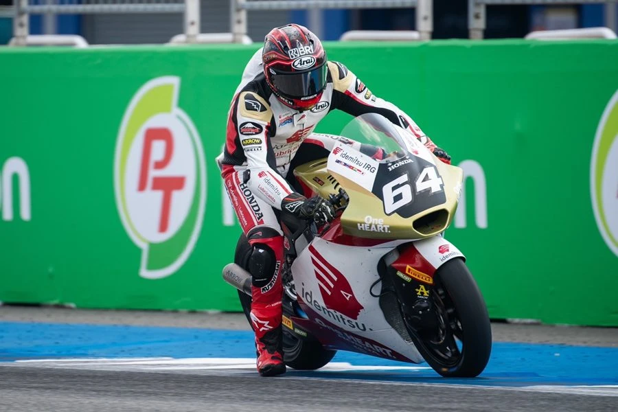 ด้าน ก๊องส์-ธัชกร บัวศรี นักบิดชาวไทย หมายเลข 5 จาก ฮอนด้า ทีม เอเชีย ในรุ่น โมโตทรี เวิลด์ แชมเปี้ยนชิพ มีลุ้นแต้มแรกในโฮมเรซเต็มตัว แต่น่าเสียดายที่เกี่ยวกันล้มกับคู่แข่งช่วงกลางเรซ ต้องออกจากการแข่งขัน เช่นเดียวกับทีมเมทชาวญี่ปุ่นอย่าง ไทโยะ ฟูรุซาโตะ หมายเลข 72 ไม่จบเรซเหมือนกัน